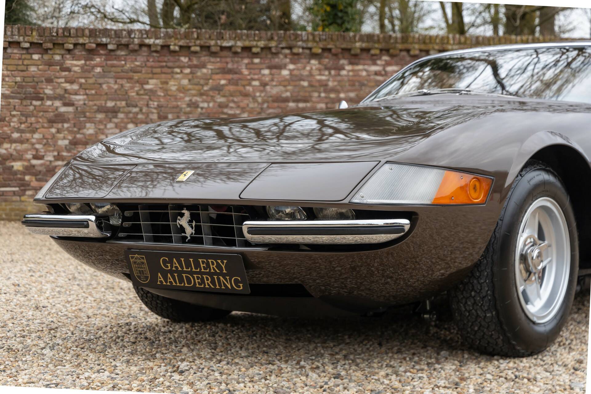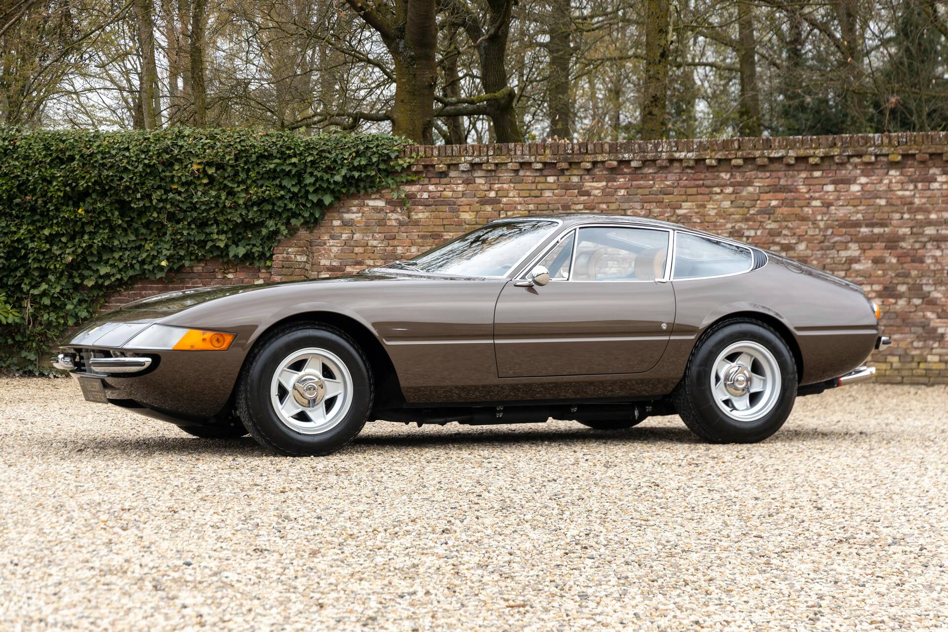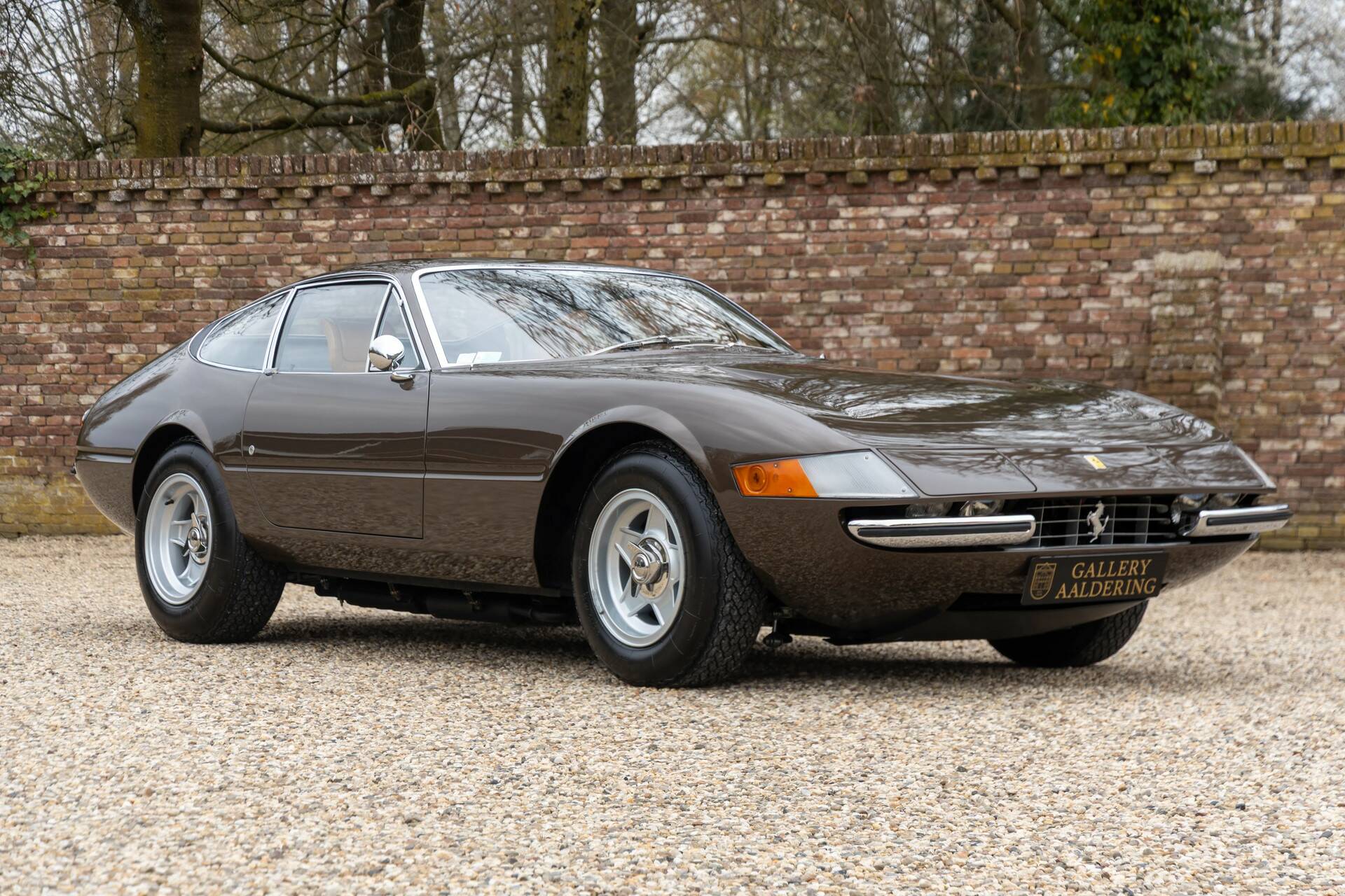 Ferrari 365 GTB4 Daytona "Matching numbers and colors" Fully restored and rebuilt by a Ferrari and Miura specialist in France, One of the most latest Daytona's (Tipo-A) - Delivered by Pozzi Paris, Presented in Marrone Metallizato over Beige, Owned for three decades by author and Ferrari expert Jess Pourret - author of “La légende Ferrari 250 GT Competition”,The Daytona with a French history,"When everything falls into place"