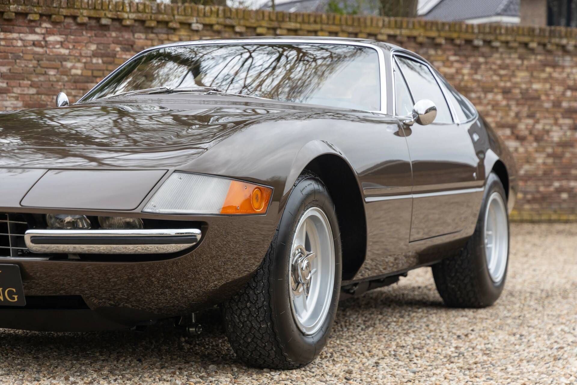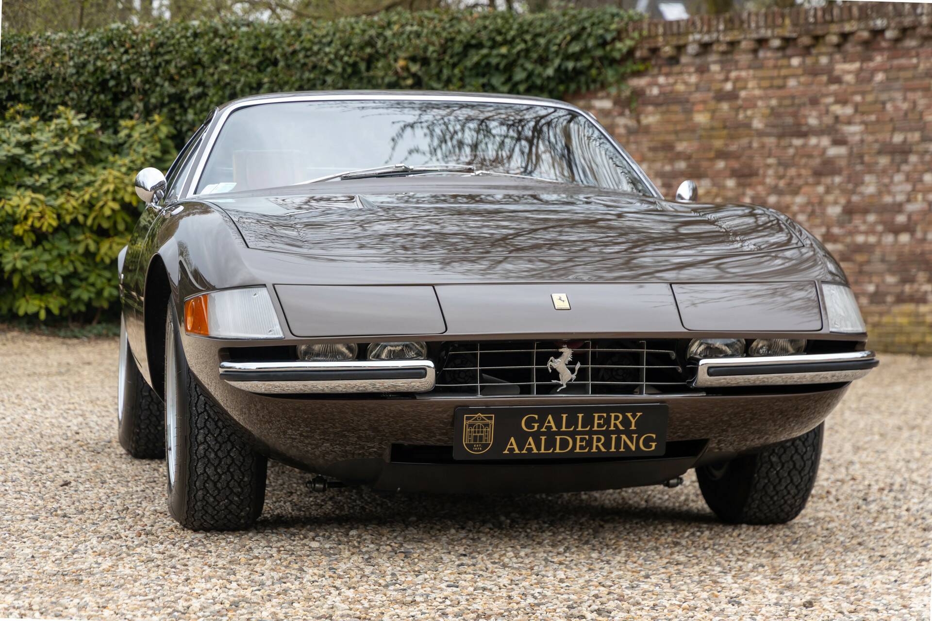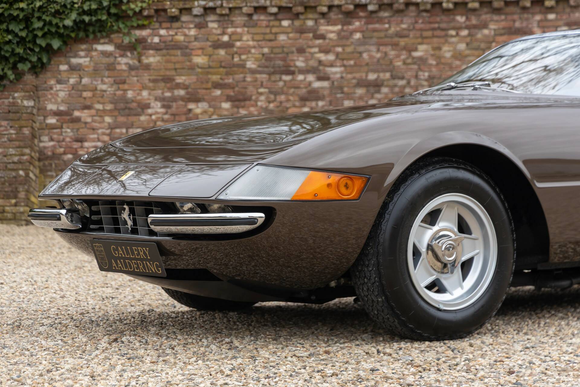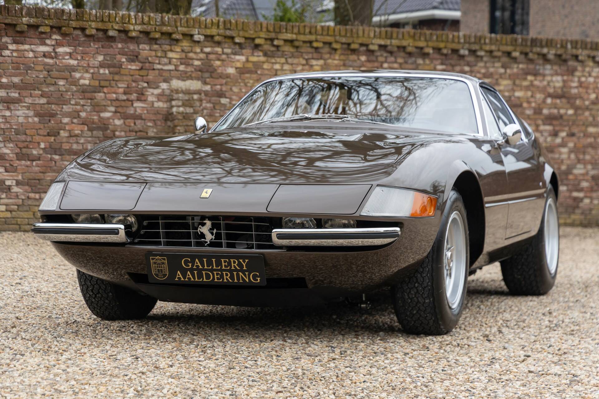 Ferrari 365 GTB4 Daytona "Matching numbers and colors" Fully restored and rebuilt by a Ferrari and Miura specialist in France, One of the most latest Daytona's (Tipo-A) - Delivered by Pozzi Paris, Presented in Marrone Metallizato over Beige, Owned for three decades by author and Ferrari expert Jess Pourret - author of “La légende Ferrari 250 GT Competition”,The Daytona with a French history,"When everything falls into place"