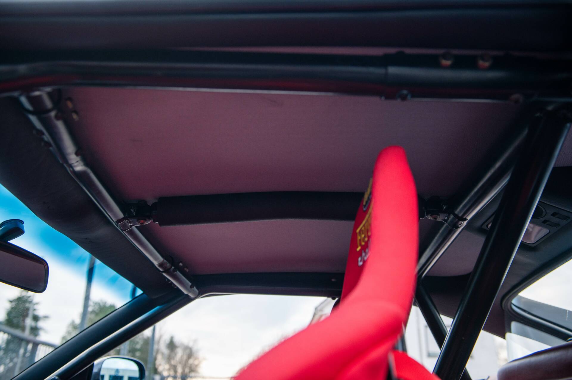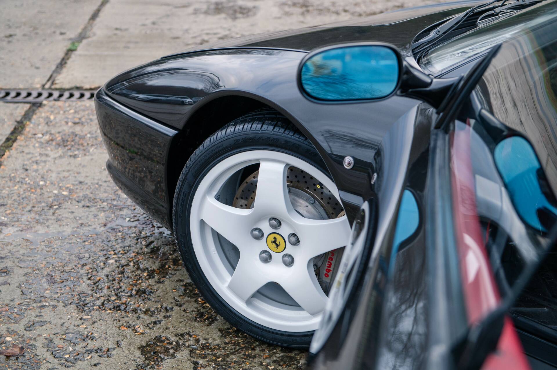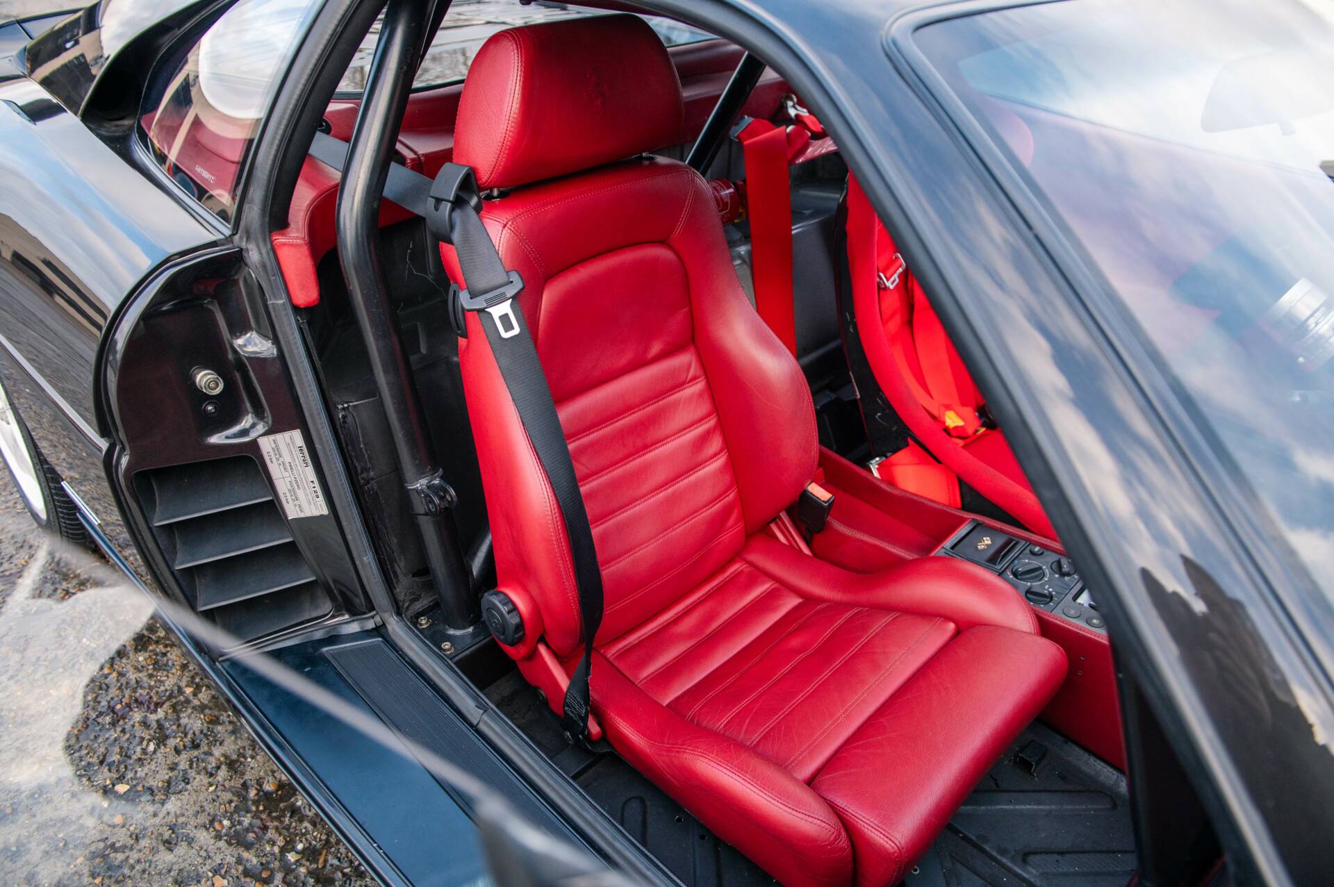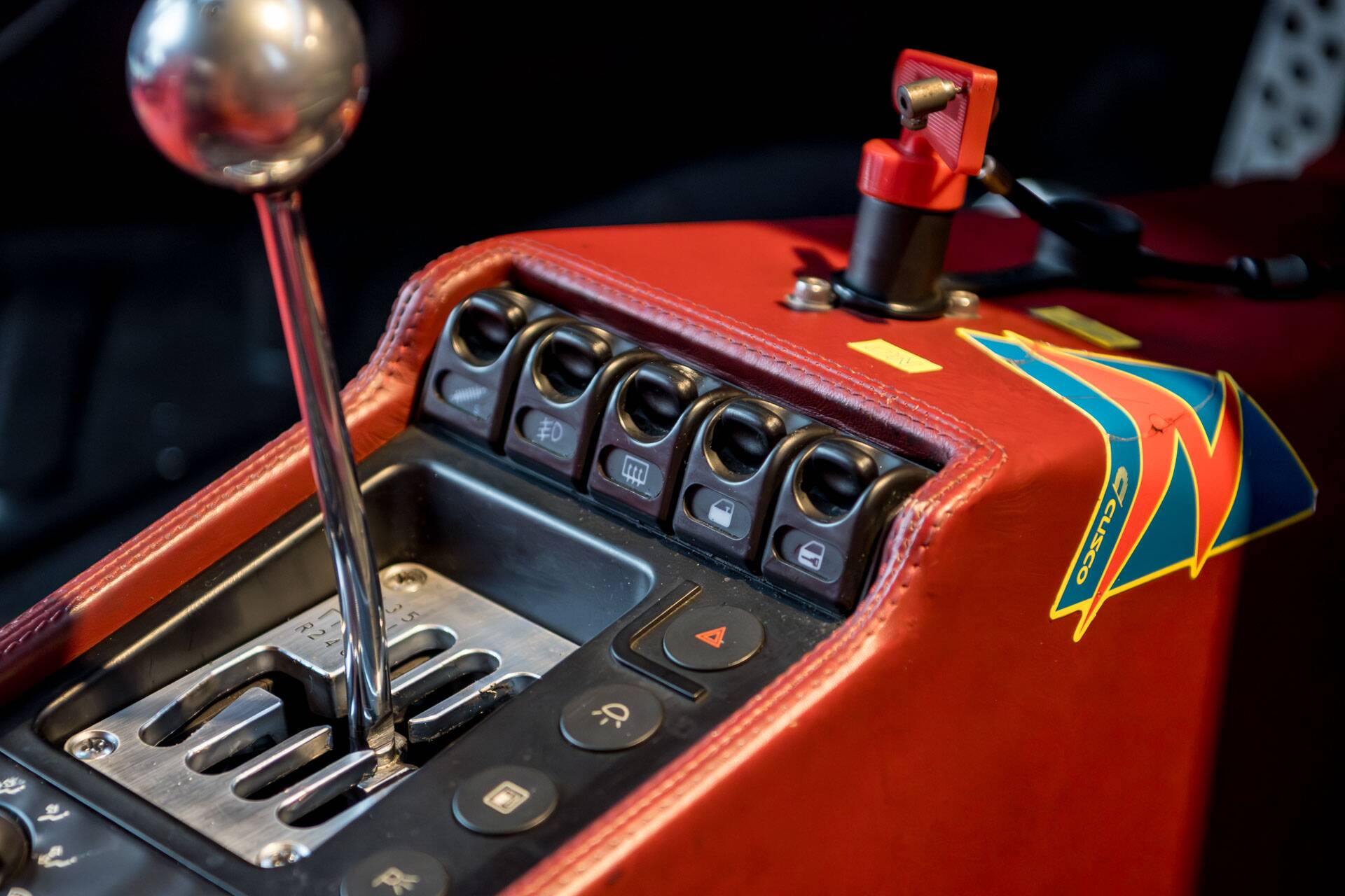 Ce qui distingue véritablement cette voiture, c’est son niveau d’originalité exceptionnel, avec une quantité remarquable de détails conformes à l’origine, rarement observés aujourd’hui sur des F355 Challenge. Elle conserve ses jantes en magnésium Speedline Corse correctes, avec les bons codes et autocollants d’origine encore visibles à l’intérieur, ainsi que tous les éléments spécifiques Challenge tels que prévus à l’origine : l’extincteur, le coupe-circuit moteur, l’anneau de remorquage correct, les attaches rapides arrière et la grille arrière Challenge noire appropriée. Toutes les vitres sont toujours en verre Ferrari SIGLA d’origine avec logos, y compris la lunette arrière portant le numéro de châssis gravé. L’arceau de sécurité OMP d’origine est toujours en place avec ses autocollants d’époque, accompagné de harnais de sécurité OMP homologués FIA. La voiture conserve également son siège de course en carbone correct, type VID CARBON CS.665.95, dans sa sellerie rouge d’origine avec ses étiquettes intactes, associé au siège passager en cuir correct. Cette configuration mixte d’origine est aujourd’hui très rare, de nombreux exemplaires ayant été modifiés par la suite avec deux sièges confort ou deux sièges Challenge. L’état de la carrosserie est tout aussi impressionnant, exempt de corrosion et confirmé par la présence des marquages d’assemblage d’origine.