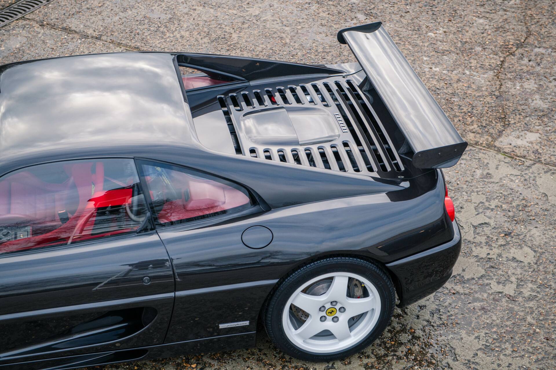 La voiture que nous proposons est l’un des seuls 108 exemplaires de Ferrari F355 Challenge construits en usine. Habillée de la rare teinte Nero Carbonio Metallizzato FER 901/C, elle se distingue immédiatement, même parmi les autres Challenge. Alors que la quasi-totalité des voitures furent livrées en Rosso Corsa, cette couleur confirmée par l’usine la rend véritablement exceptionnelle et nettement plus désirable pour les collectionneurs.