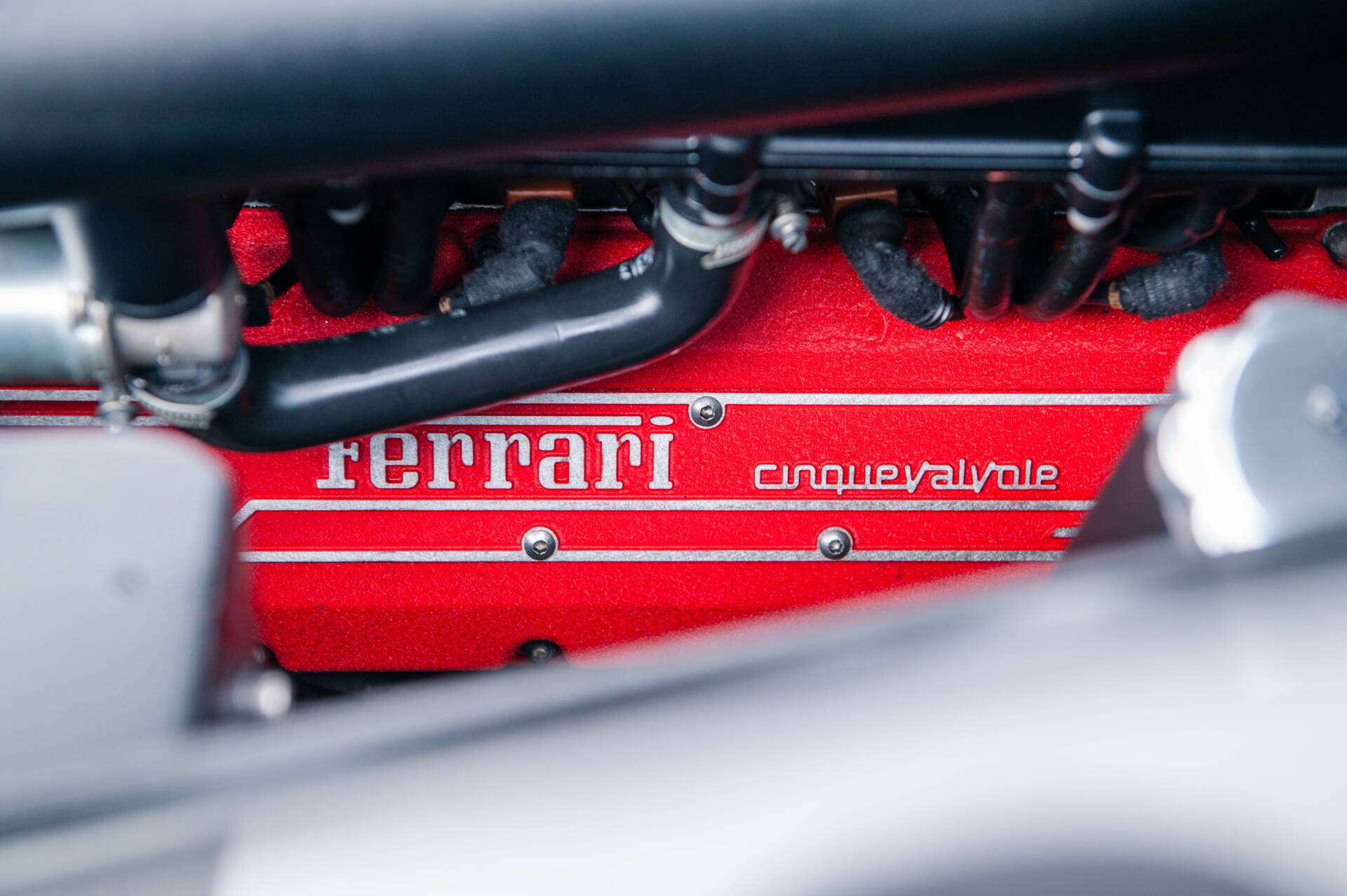 Tout aussi important, cette F355 Challenge est homologuée pour la route et a été immatriculée dès l’origine. Il ne s’agit pas d’une conversion ultérieure pour la piste, mais bien d’une véritable Challenge routière conforme à l’esprit et aux intentions de Ferrari lors de la création de la série. En tant qu’exemplaire précoce de première génération, elle est équipée du très recherché système de gestion moteur Bosch Motronic M2.7. Pour les connaisseurs, cette configuration est unanimement reconnue comme la plus réactive et la plus pure de la F355 Challenge. La réponse à l’accélérateur est instantanée, le moteur semble constamment vivant et le caractère général est brut, dans le meilleur sens du terme.