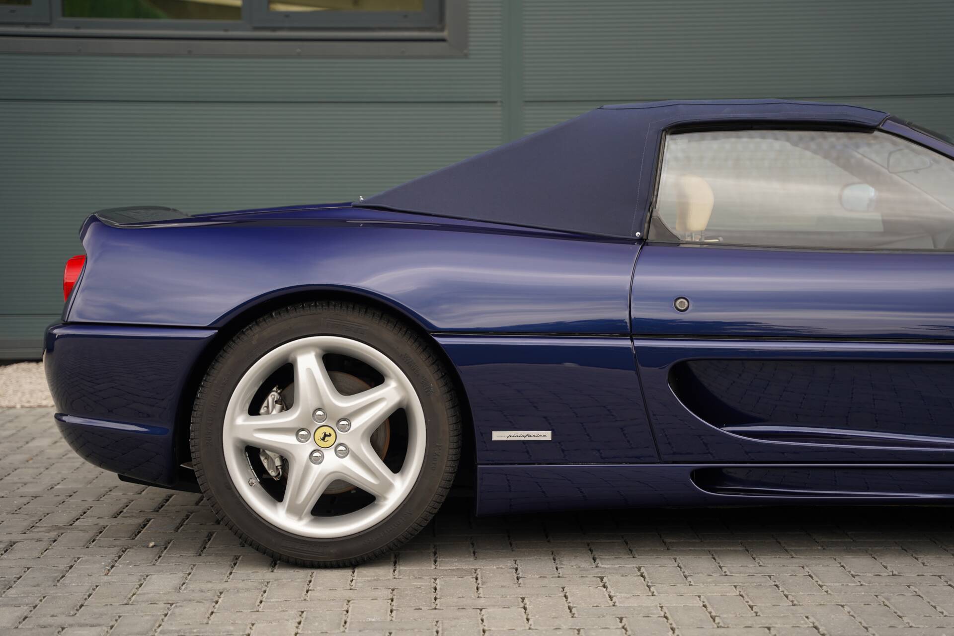 Accompanied by its original book pack, tool kit, and stamped service booklet, this F355 Spider is a true collector-quality example. The car presents in a superb cosmetic condition, having just been subject to a full exterior respray by the expert Hilton & Moss team, alongside freshly refurbished wheels. The interior remains wonderfully preserved and is complemented by a dark blue hood and leather tonneau.