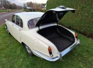 La Jaguar S-Type présentée ici a été livrée neuve en 1964. Elle a été immatriculée pour la première fois aux Pays-Bas en 1981. Une restauration complète, boulon par boulon, a débuté fin 1988 et s'est étalée sur plusieurs années. Ce travail a été réalisé avec le plus grand soin, comme en témoignent les nombreuses factures et photos de cette restauration fournies avec le véhicule. Cette voiture est équipée d'un puissant moteur 6 cylindres de 3,4 litres, couplé à une boîte de vitesses manuelle à 4 rapports. Elle dispose également d'un overdrive !