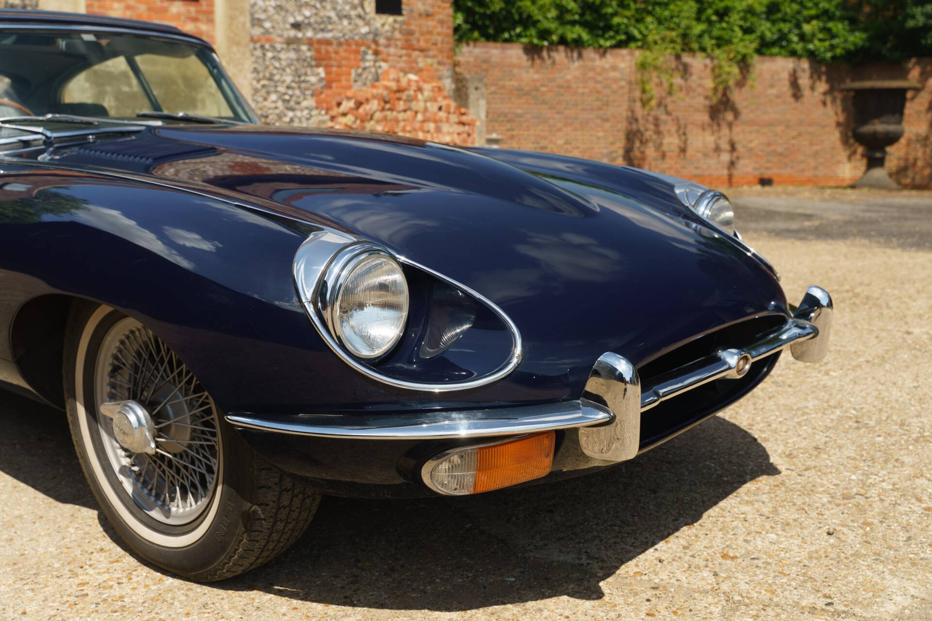 This E-Type started life as an export example destined for New York; it was repatriated to the UK in 1988 and treated to a rather extensive restoration in the mid 1990s, at which time it was converted to right hand drive. The history file contains a wealth of invoices from this restoration detailing everything involved and contains many photos of the restoration. Our vendor purchased the car around four years ago, as he had always fancied an E-Type, but the car hasn't seen as much use as he thought it might, so the time has come for someone else to enjoy it. Presented in beautiful Navy Blue with a light grey interior, the overall condition is very good, commensurate with the 30 years since the restoration took place. A further £7,000 was spent in 2011 on lots of smaller jobs such as replacement of mounts and gaskets and a general underside freshen up, fewer than 10,000 miles have been covered since. Supplied to auction with an impressive history file, restoration photos, E-Type parts catalogues and a V5C registration document, this looks like an excellent way into E-Type ownership. Consigned by Fraser Smith
