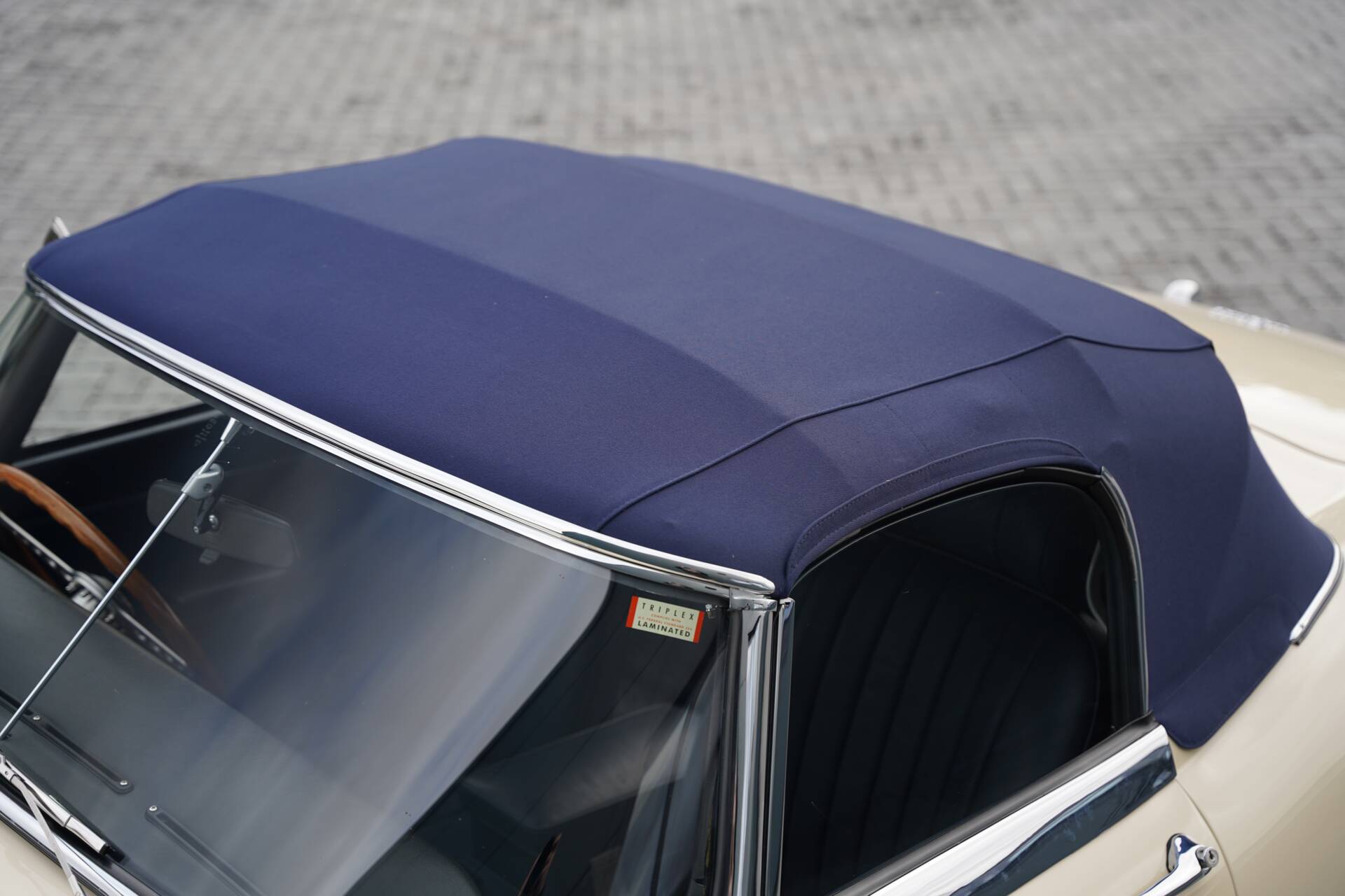 The Heritage certificate reveals that this car rolled out of the factory on August 13th 1969, destined for Henlys of Manchester and was soon acquired by Mr. J L Samuels. Finished in its factory specified colourway of Jaguar Cream with a Navy Blue interior, the car is a full matching numbers example, retaining its original engine, gearbox and body.