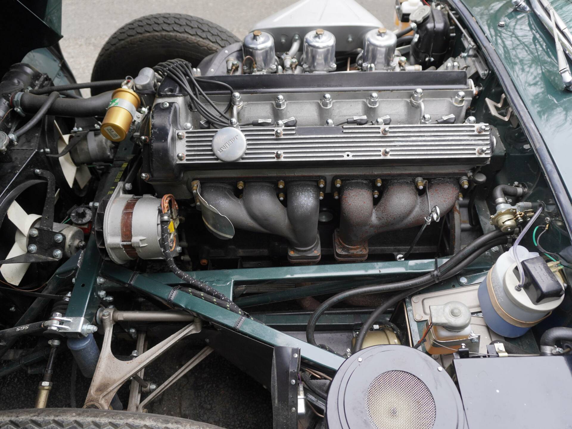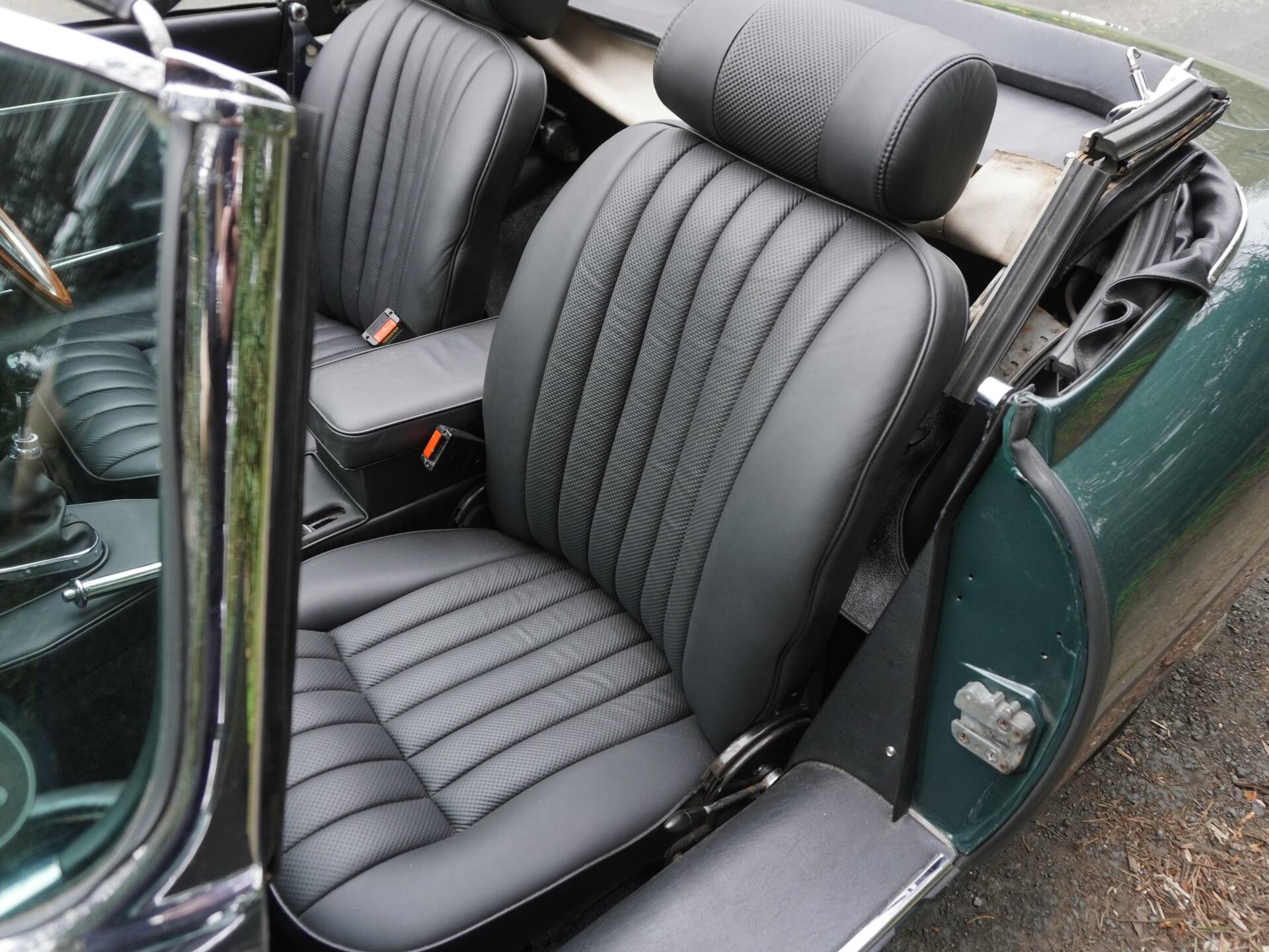The most recent owner took custody of the car in 2020 and having paid over £50,000 for the car, then commissioned a marque specialist to carry out major work on the car costing in the region of £60,000. The E-Type was subject of various bodywork, the rear and was converted to represent a Series One, the car then repainted in its original colour including the hard top. The engine was fully rebuilt to ‘Splined Hub‘ specification with OE parts used throughout, the gearbox was also rebuilt to the specialists' specification including new synchro rings and bearings. The fueling system was replaced with triple SU carbs. The front steering and suspension assembly were rebuilt and powder coated where necessary. The rear suspension was also subject to a full rework, reconditioning the prop shafts and new universal joints were fitted along with the brake pipes and flexi hoses being replaced. The interior was retrimmed in Black with new seat foams added. Series I style chrome wire wheels were fitted along with new Vredestein Sprint Classic tubeless tyres.