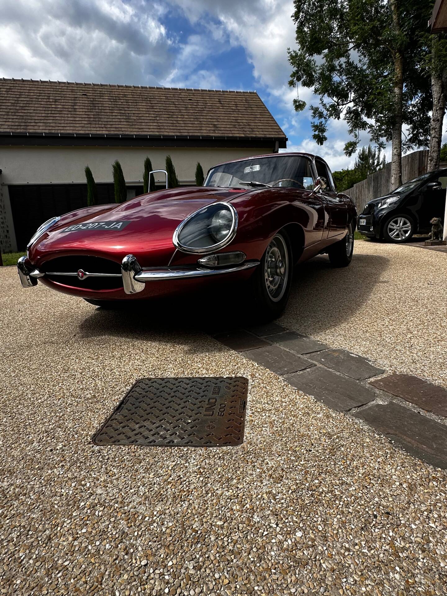 Superbe Type E série 1 3.8 Marching Number entièrement restaurée du châssis. Moteur préparé avec de grosses soupapes et une culasse travaillée ce qui lui donne beaucoup d’énergie et un très beau bruit. Équipée de 4 freins 4 pistons racings, échappement à gros débit, amortisseurs réglables, boîte 5 vitesse Getrag, 4 jantes Dunlop racing neuves. Allumage et ventilateur électroniques. Intérieur cuir noir neuf. Dossier complet de la restauration.