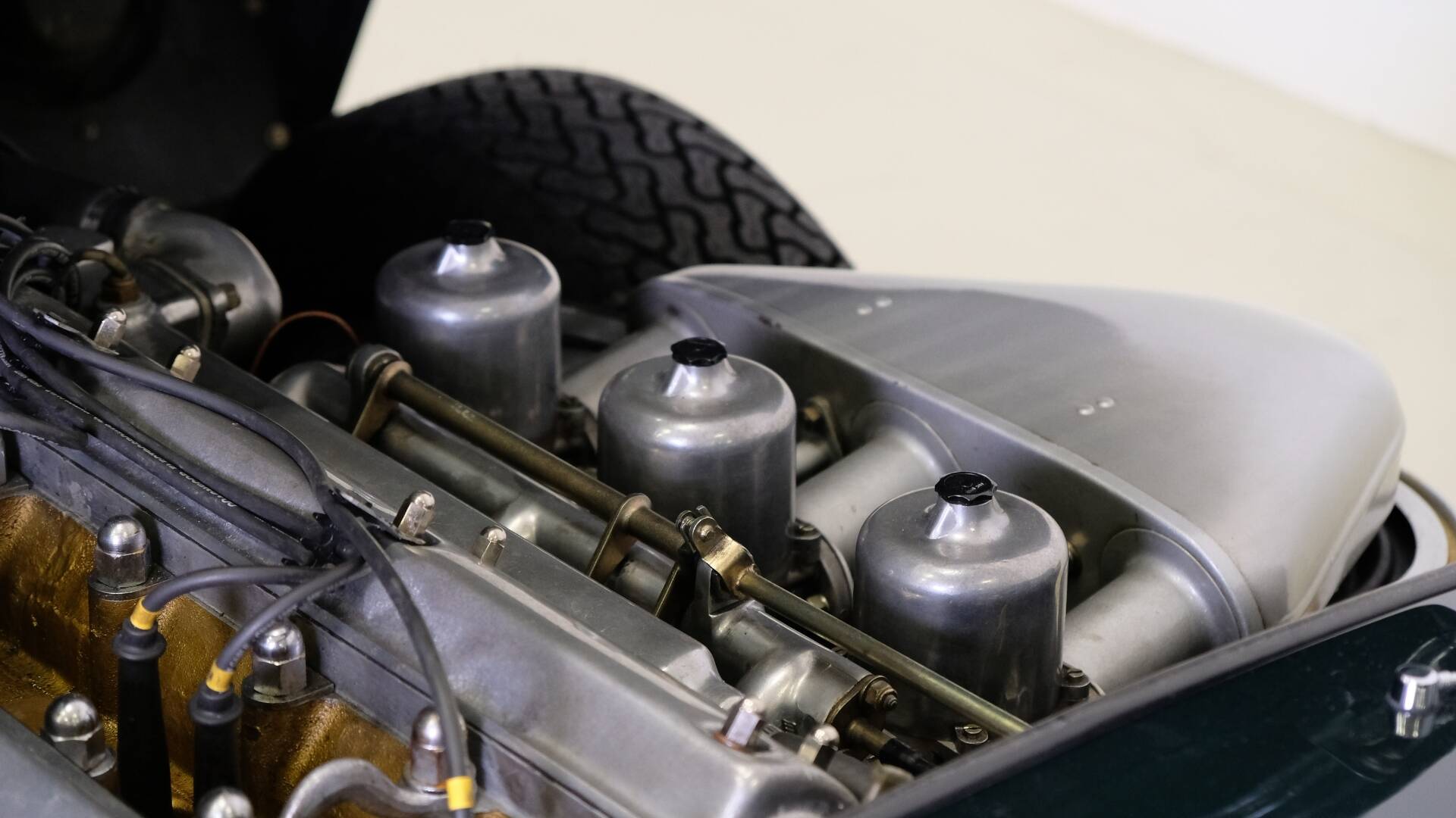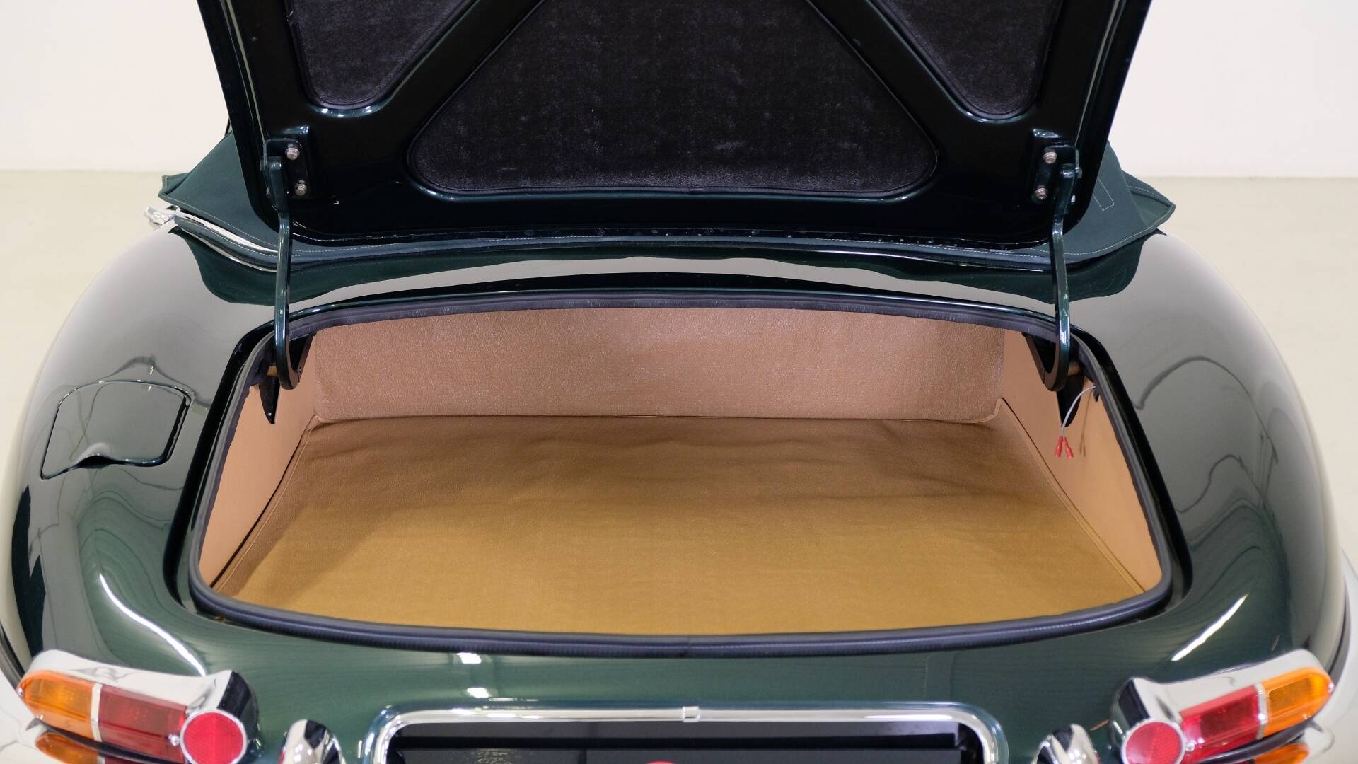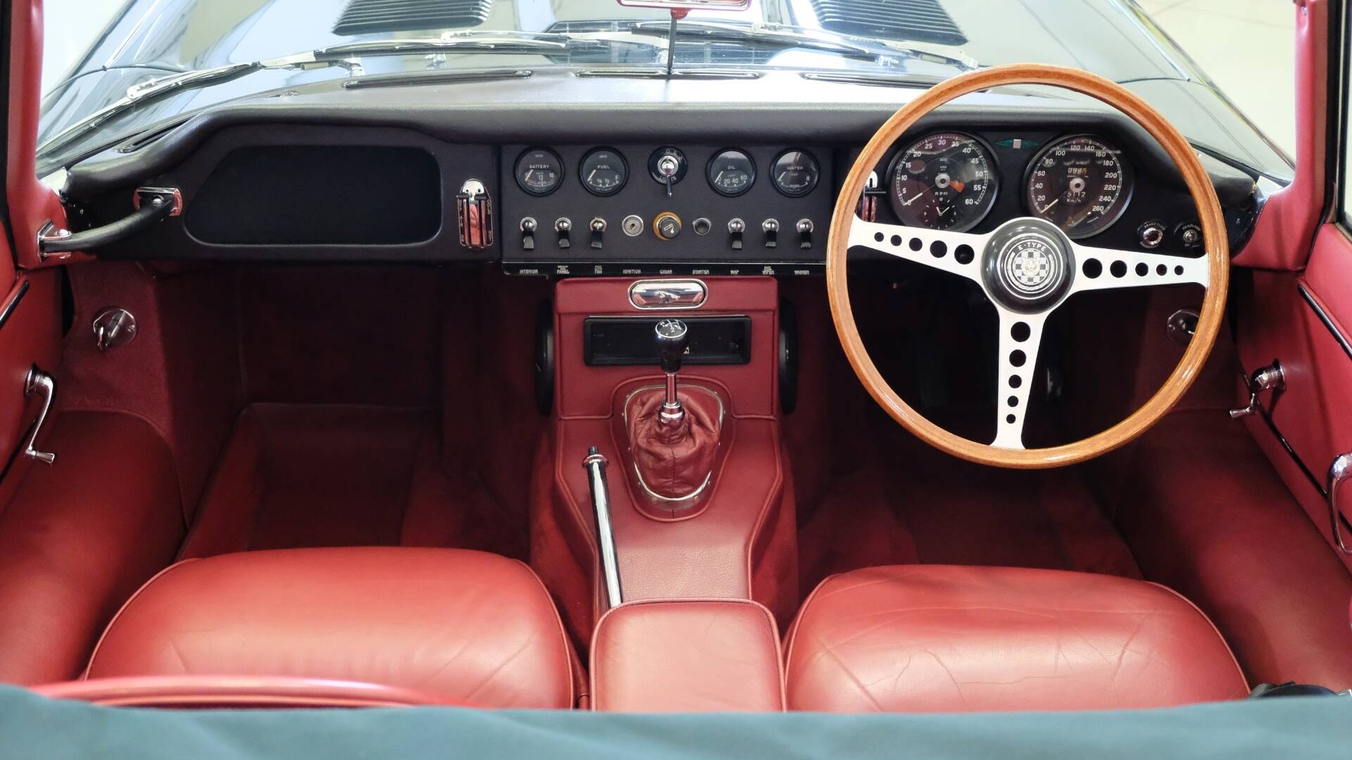 An enormous amount of work was undertaken, with particular attention paid to the fabrication of new body panels and the front subframe, as well as a comprehensive rebuild of the front and rear suspension. Known weaknesses of the E-Type were carefully addressed, with upgraded Cooper Craft brakes and a bespoke radiator fitted to improve braking performance and cooling. The 3.8-litre straight-six engine was rebuilt to original factory specification using numerous new components, while the matching-numbers four-speed Moss manual gearbox was also fully overhauled. A complete stainless-steel exhaust system was custom fabricated and installed. The body was then finished in classic British Racing Green, enhanced by a subtle metallic base.