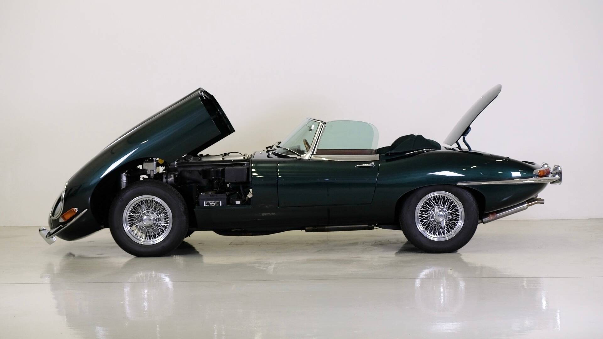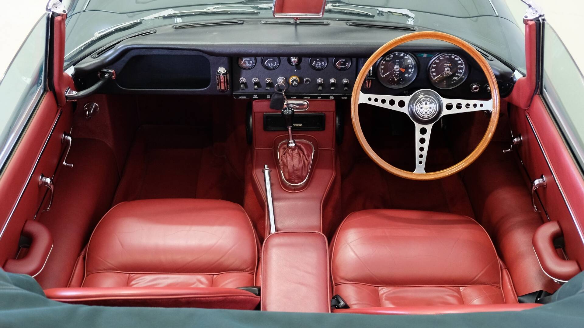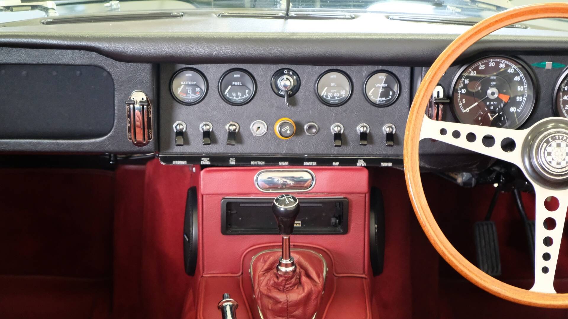 An enormous amount of work was undertaken, with particular attention paid to the fabrication of new body panels and the front subframe, as well as a comprehensive rebuild of the front and rear suspension. Known weaknesses of the E-Type were carefully addressed, with upgraded Cooper Craft brakes and a bespoke radiator fitted to improve braking performance and cooling. The 3.8-litre straight-six engine was rebuilt to original factory specification using numerous new components, while the matching-numbers four-speed Moss manual gearbox was also fully overhauled. A complete stainless-steel exhaust system was custom fabricated and installed. The body was then finished in classic British Racing Green, enhanced by a subtle metallic base.