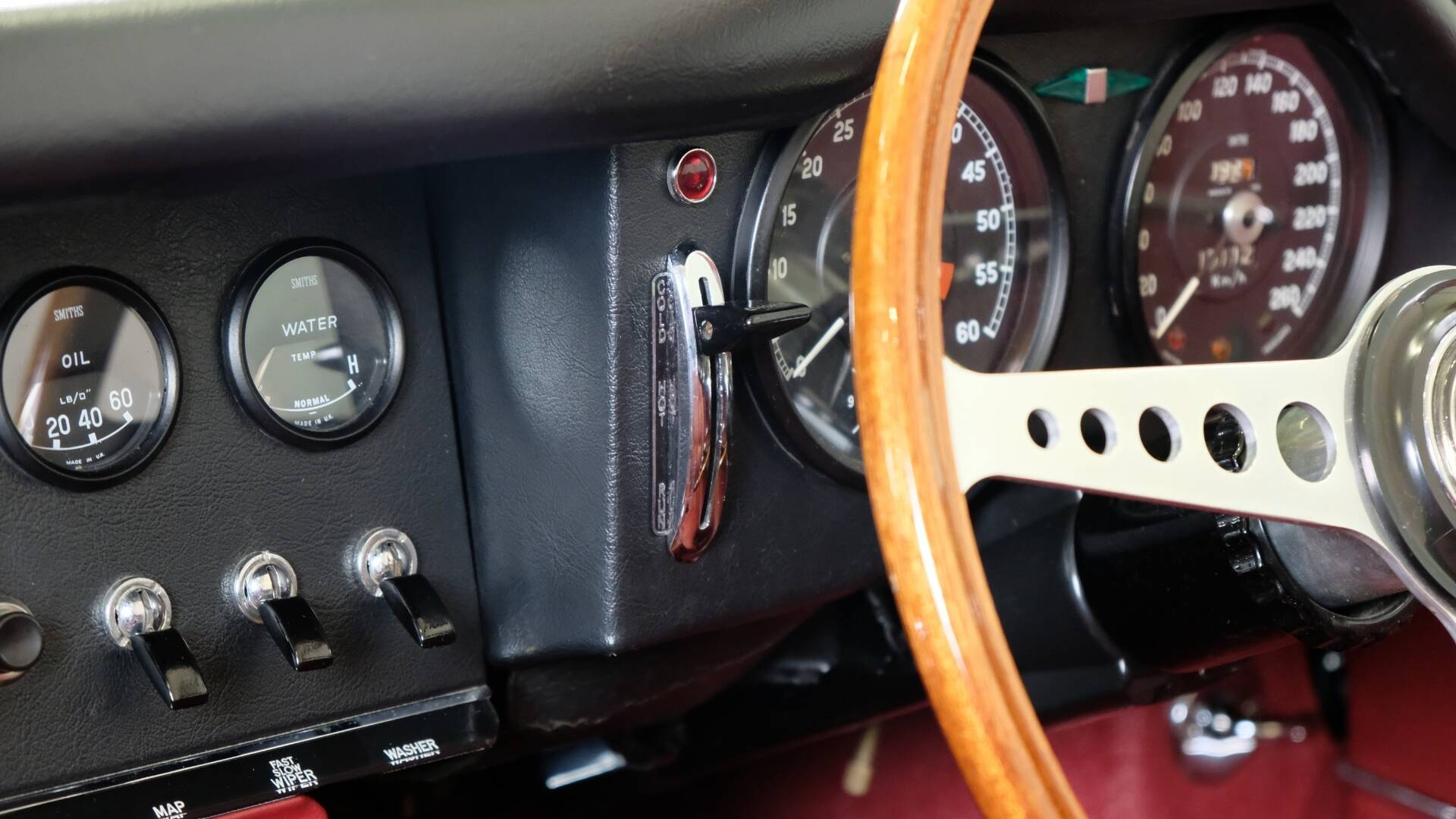 This car is a Jaguar E-Type Series 1 3.8, chassis number 880073. Importantly, it is not a modified Beacham reinterpretation, but rather a meticulously restored example rebuilt to its original factory specification. The nut-and-bolt restoration was completed approximately nine years ago, and the car still presents as fresh and precise as it did when it left the Beacham workshops, a clear testament to the craftsmanship involved and the quality of materials used throughout the two-and-a-half-year restoration process.