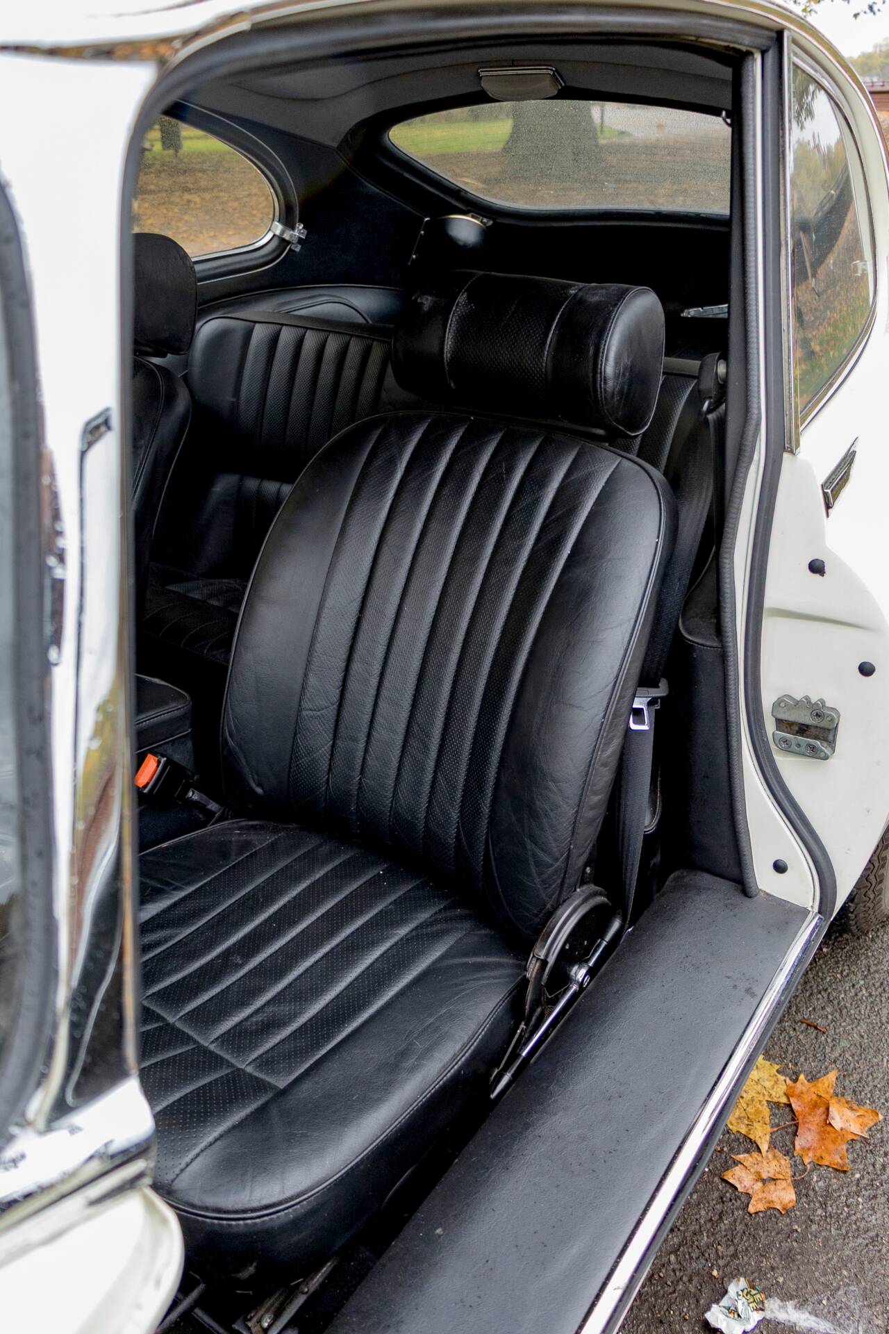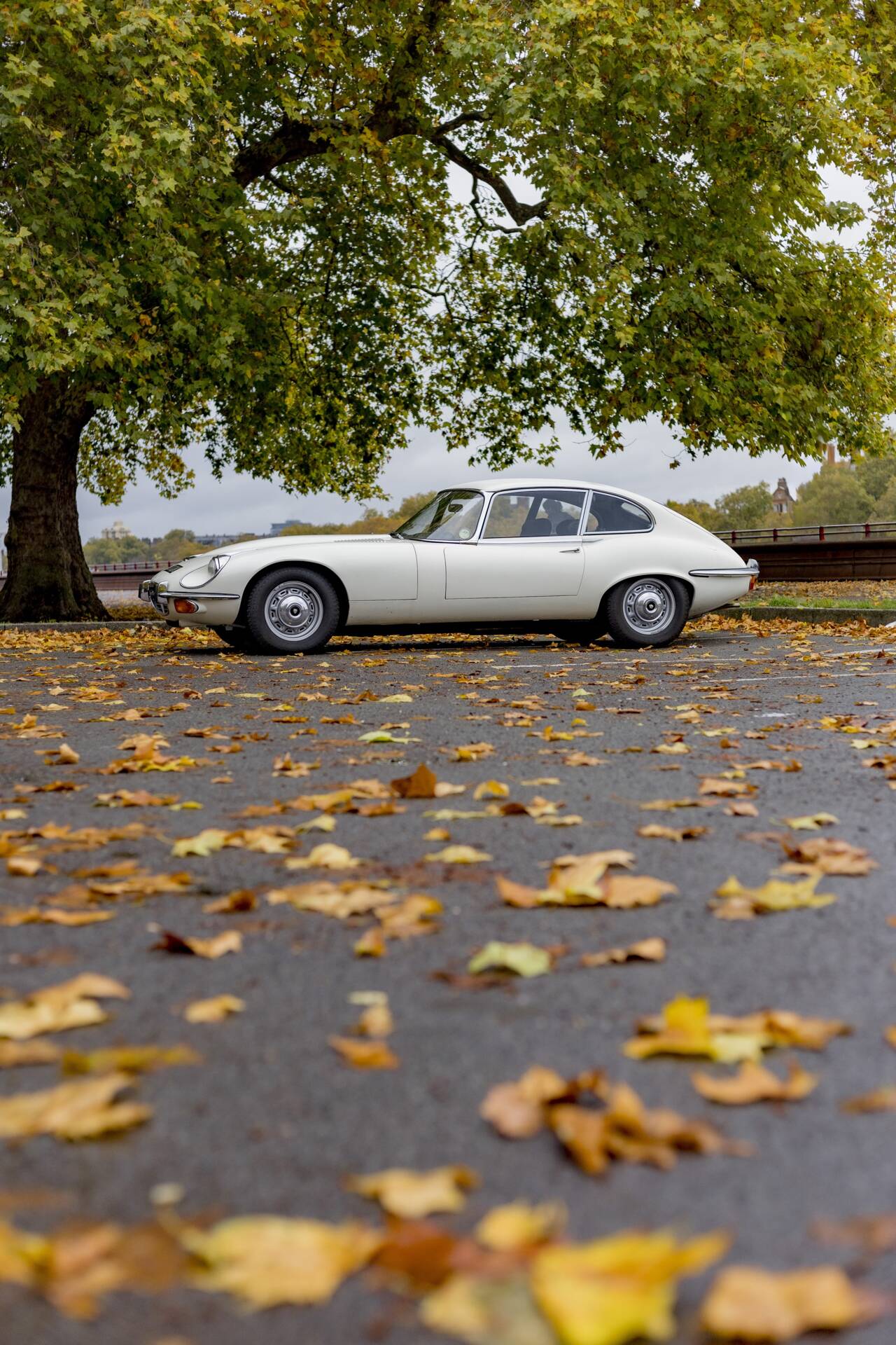 Re-registered in 2015 with support from E-Type Owners Club and DVLA inspection (document retained) after its restoration was completed, the car was given a mechanical rebuild by experts Enginuity based in West London. The car also benefited form a bare metal respray and subsequent re-trim. Today it is finished in its original colour of Old English White and black leather seats along with navy carpets and a grey headliner. A sympathetic restoration, originality was retained wherever possible. The car has since been regularly serviced and maintained regardless of cost. Reported by the vendor to run and drive very well, this handsome final evolution of the legendary E-type is ready to stretch its legs on the open road. Consigned by Will Penrose