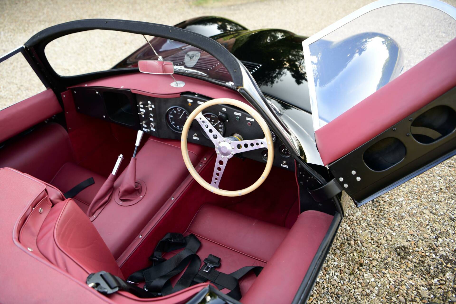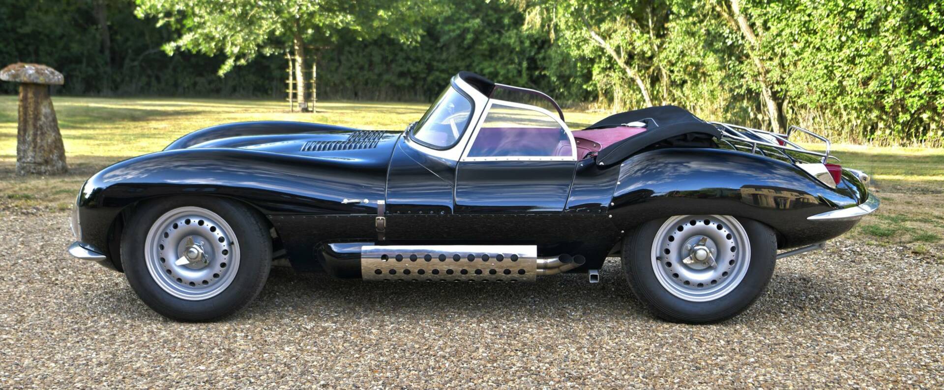 DESCRIPTIONThis XKSS re-creation was constructed in 2015-17 - in storage sinceJuly 2024 complete re-commissioning, full set-up and comprehensive road test completed by Classic Performance Engineering in Bicester UKHand-made, all-alloy bodywork Using riveted aluminium sheet, the coachwork conforms to the original method of constructionSuperbly finished in gloss black by Normandale of Daventry Smart red interior with competition harnesses, racing seats and a padded transmission tunnel 3.4-litre, dry-sump engine with triple Weber 45DCOE carburettors.(c250bhp)Uprated throughout to maximise potential where possible16", Dunlop-pattern, peg-drive alloy wheels with 3-eared spinners