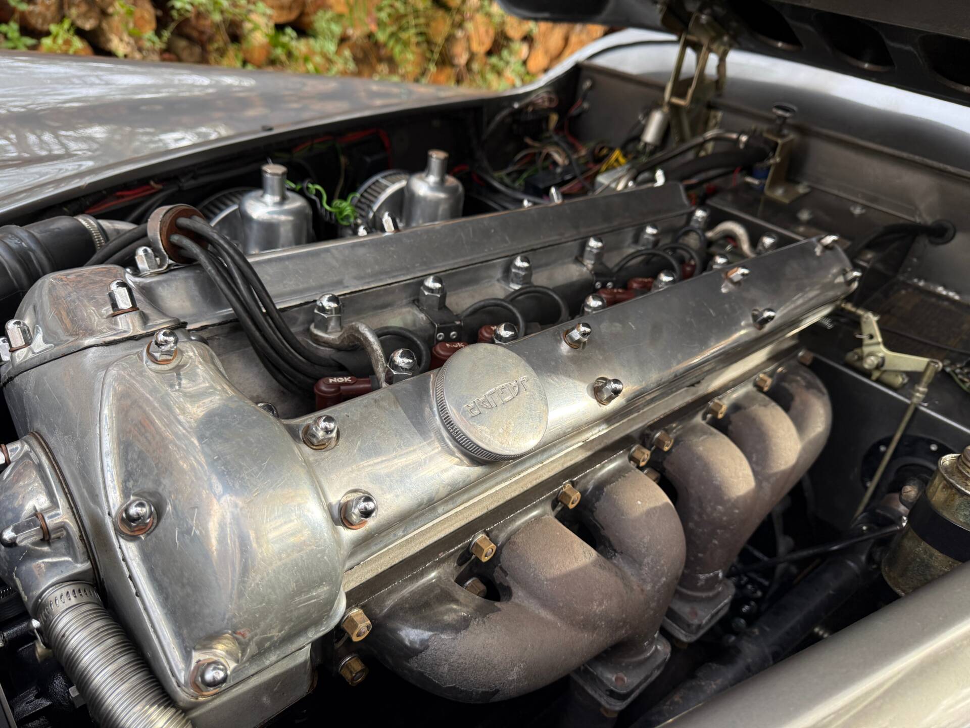 Der XK140 gilt als der komfortorientierte, technisch weiterentwickelte Nachfolger des XK120. Dieses Exemplar profitiert zusätzlich von einer professionellen Umrüstung auf eine vordere Scheibenbremsanlage, die hinter den originalen Felgen unsichtbar bleibt.