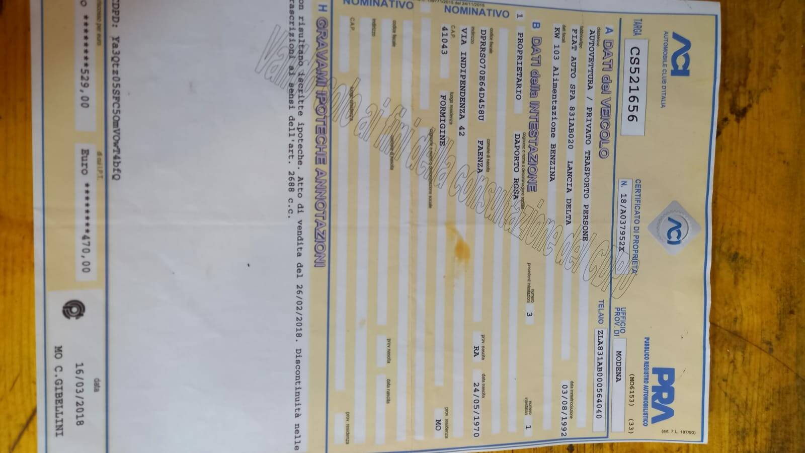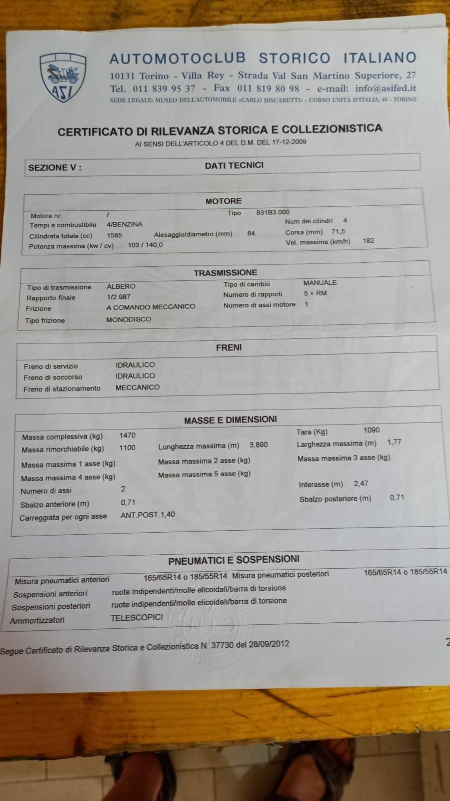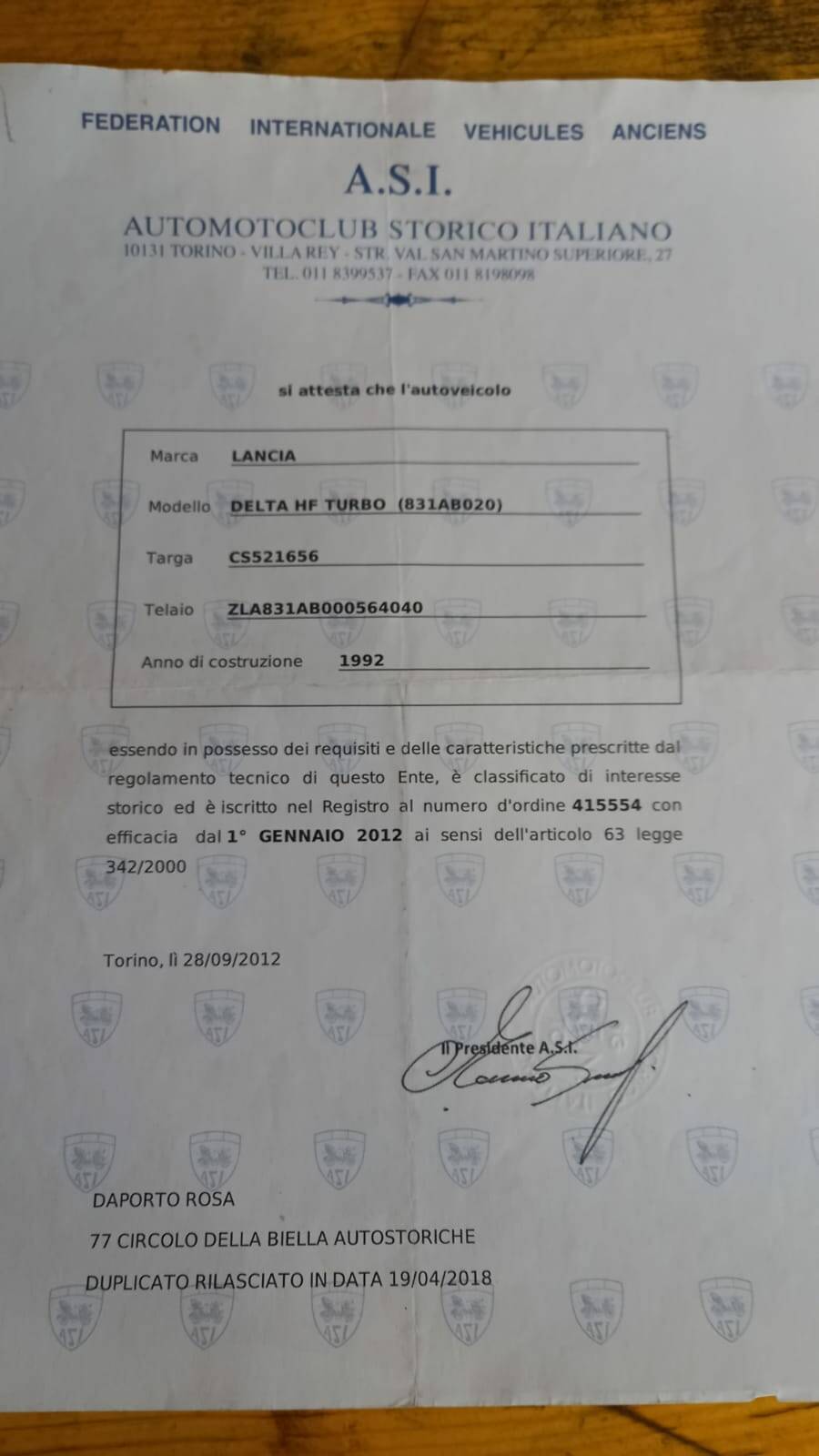 Année 1992, 127 865 km, chaîne de distribution remplacée à 125 000 km, entièrement révisée et prête à rouler. Certifiée ASI (Automotoclub Storico Italiano), avec documentation originale et housse Lancia.