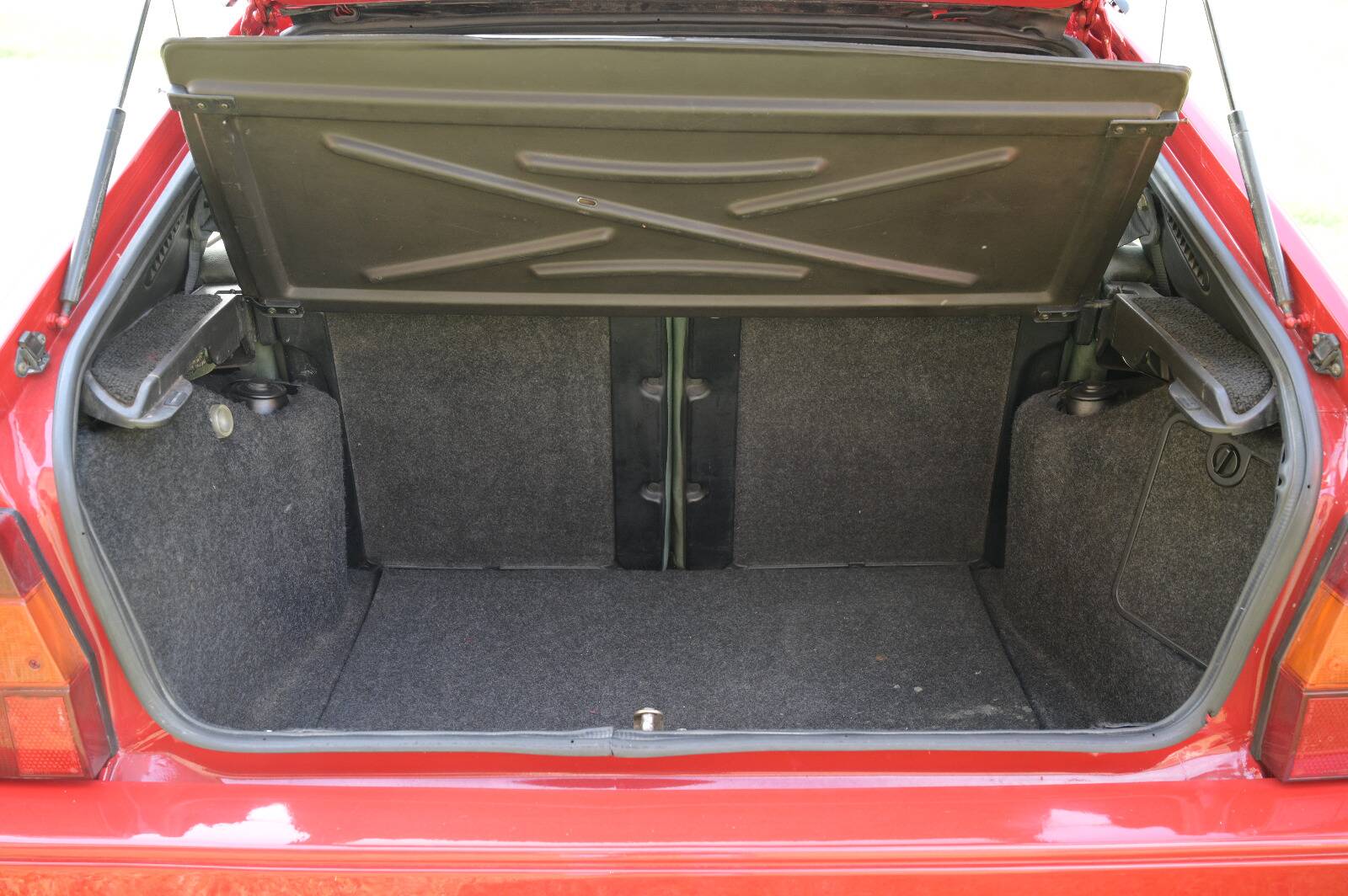 Sous le capot bat un moteur turbo 1600 avec un compresseur Garett optimisé développant environ 300 ch. Pas une simple HF Turbo, mais une véritable « Evoluzione » dans l’âme : phares, tableau de bord, levier de vitesses et volant d’origine Evo. Les détails sont un rêve pour puristes : ailes élargies en tôle Integrale, projecteurs Hella d’époque, suspension rallye et ces mythiques jantes Speedline 16 pouces à 5 branches prêtes à mordre le bitume ou le gravier.