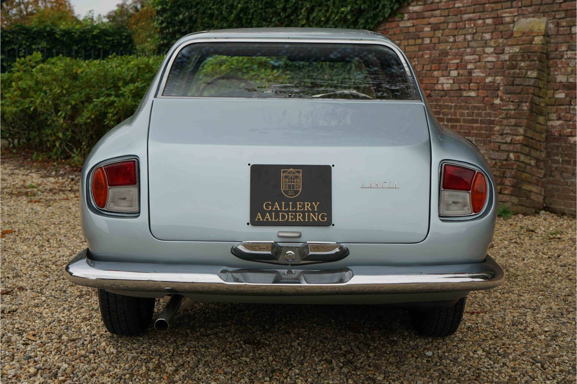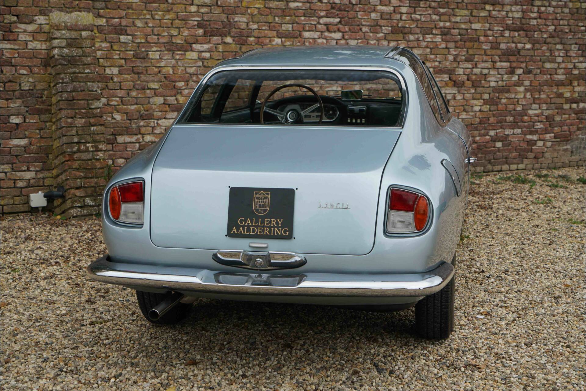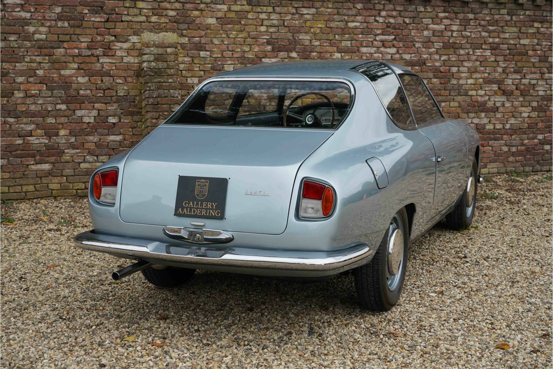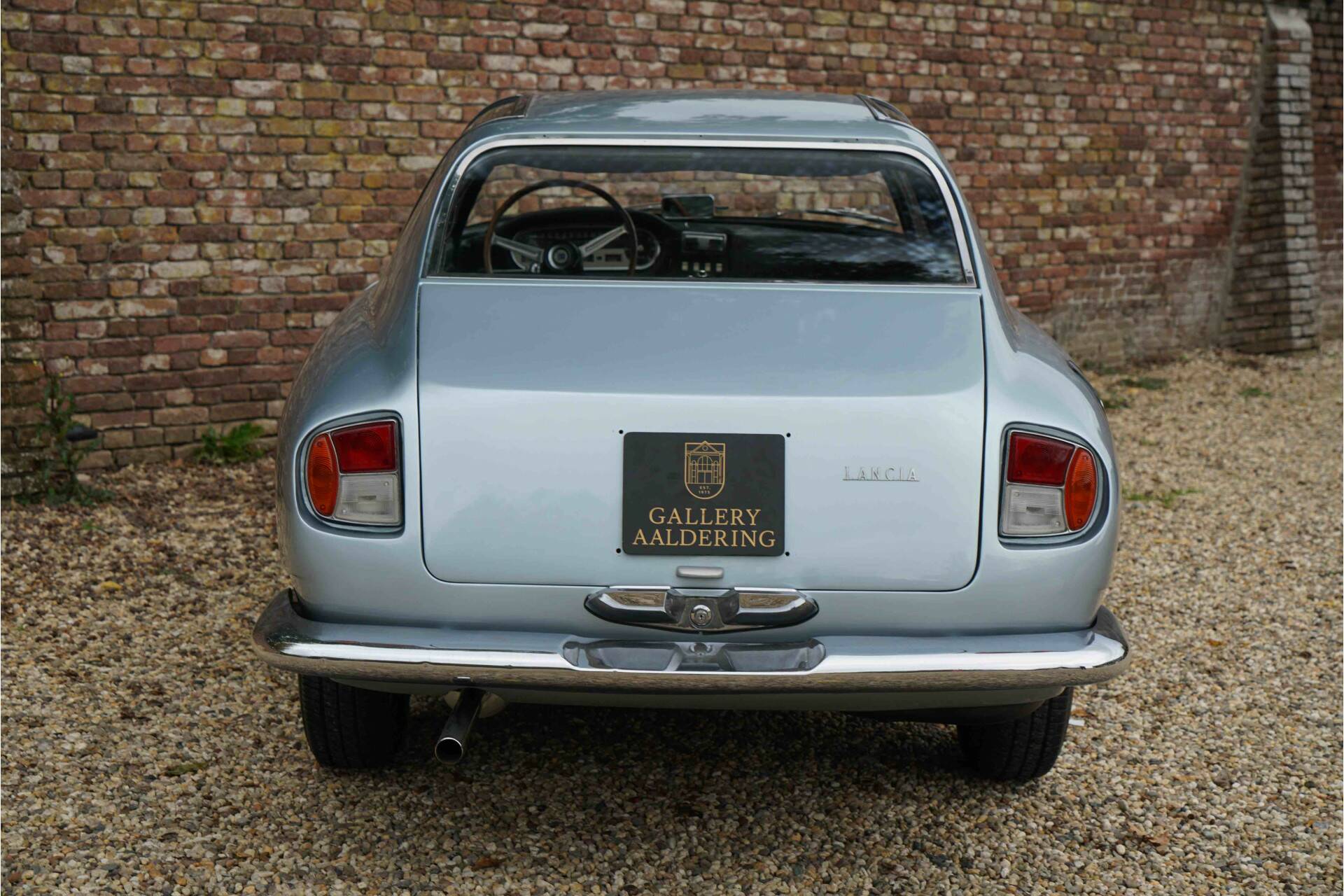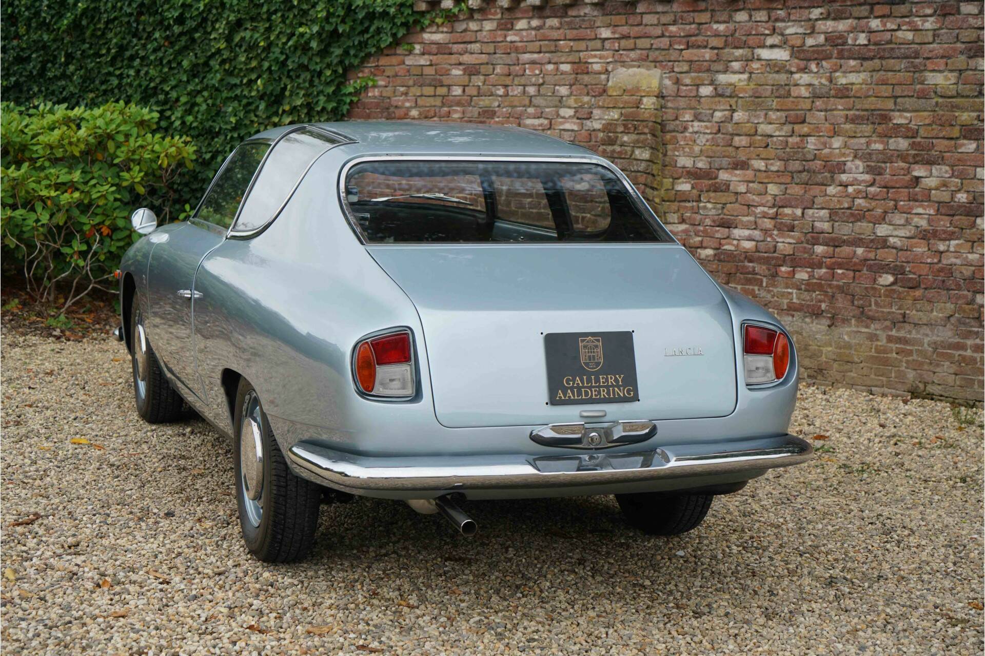 A rare and very attractive Lancia Flavia Sport Zagato 1800 Iniezione. Initially the Flavia was only available as 4-door with an aluminium 1500 Boxer engine. This was shortly followed by the Pininfarina designed short-base 2-door coupé. The convertible came from Vignale, whilst Zagato took charge of the design for the lightweight Sport version. Our car is the unique Lancia with bodywork by Zagato. This exquisite aluminium bodywork has wonderful stylistic characteristics such as the rear panoramic side windows the convex front side windows, the panoramic front window screen and the opening convex rear window screen. Only 626 Zagato’s were made of which only 512 had the 1800 engine. To make our car even more exclusive it not only has the 1800 engine and 5-speed gearbox, it also has the rare Kugelfisher injection system. There were only 32 Zagato’s made with this configuration, elevating this particular variant to the rarest ones about! It left the factory in 1966 and was first registered in Italy. A mechanical overhaul and restoration took place some years ago. The fine bodywork has good quality and well-fitting body panels. All decorative elements are in good order and the fine interior has been correctly looked after. Invoices indicate that a major service in 2013 was carried out by a well-known German Lancia specialist. This Zagato is in fine working order and drives perfectly. We welcome you to come and admire this exclusive Lancia with its rare Zagato bodywork!