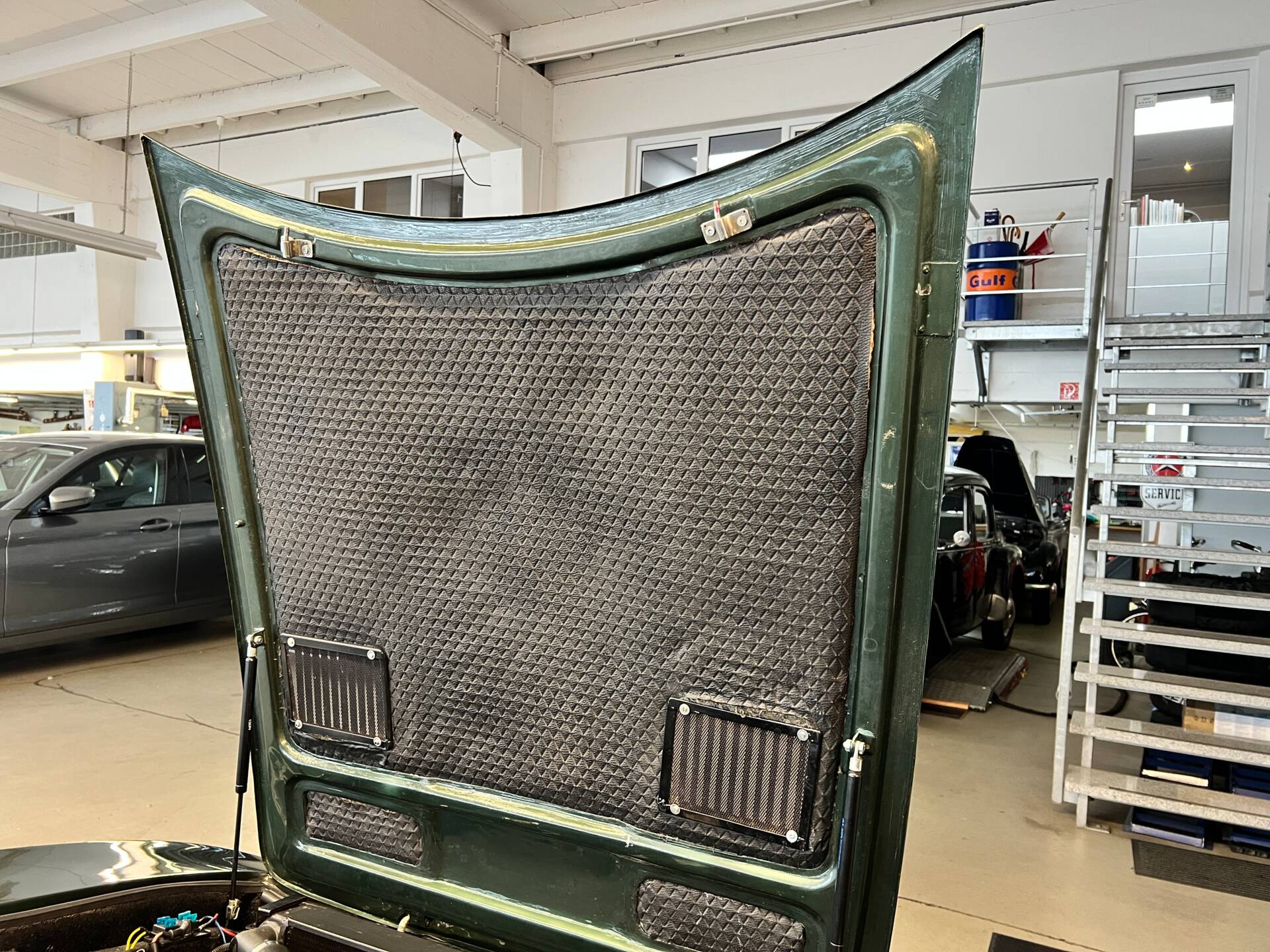 Das Fahrzeug wurde vollständig zerlegt und neu in der Wunschfarbe Oak-Grünmetallik lackiert.