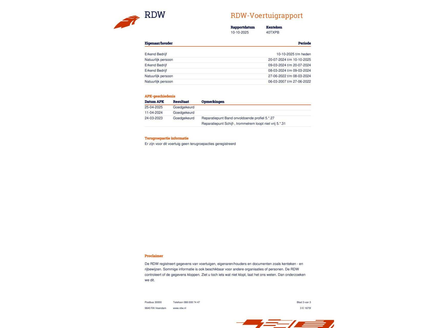 De auto zit prachtig in de lak, geen roest, super mooi interieur en als je zou zeggen dat je ie nog geen ton heeft gelopen dan geloof je dat direct met het rijden. Alles is even strak. Staat op goede Michelin banden en dat is al een teken dat er niet op bezuinigd is. Auto heeft in april onderhoudsbeurt gehad en is klaar voor nog vele praktische en plezierige ritten.