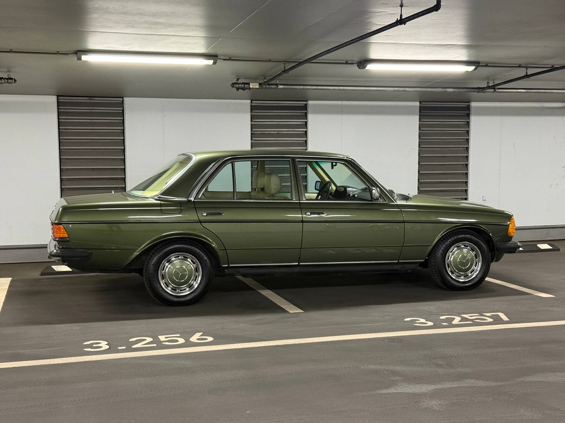 Zypressengrüner W123 mit Klima, Leder, Automatik pneumatischer Zentralverriegelung und Tempomat