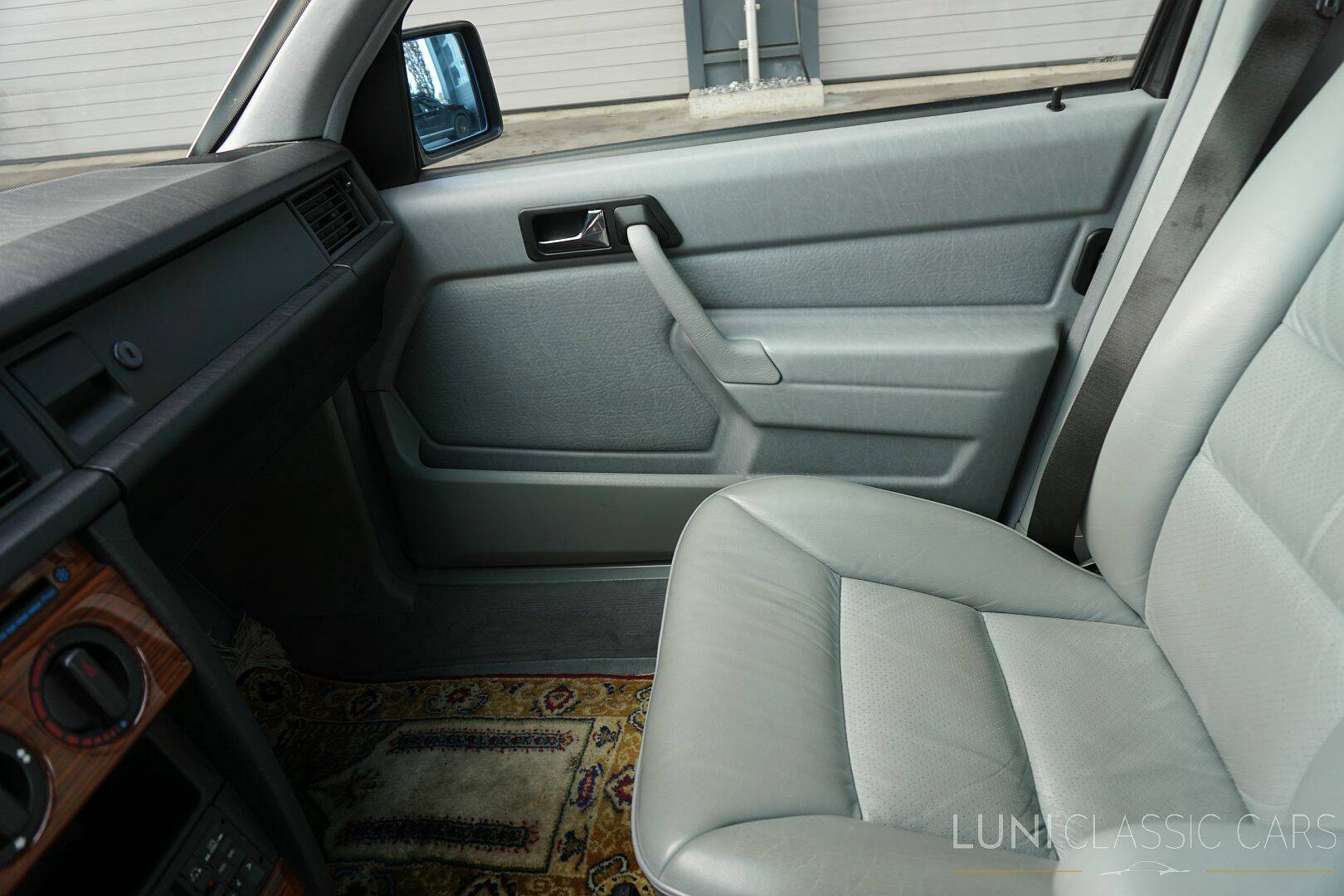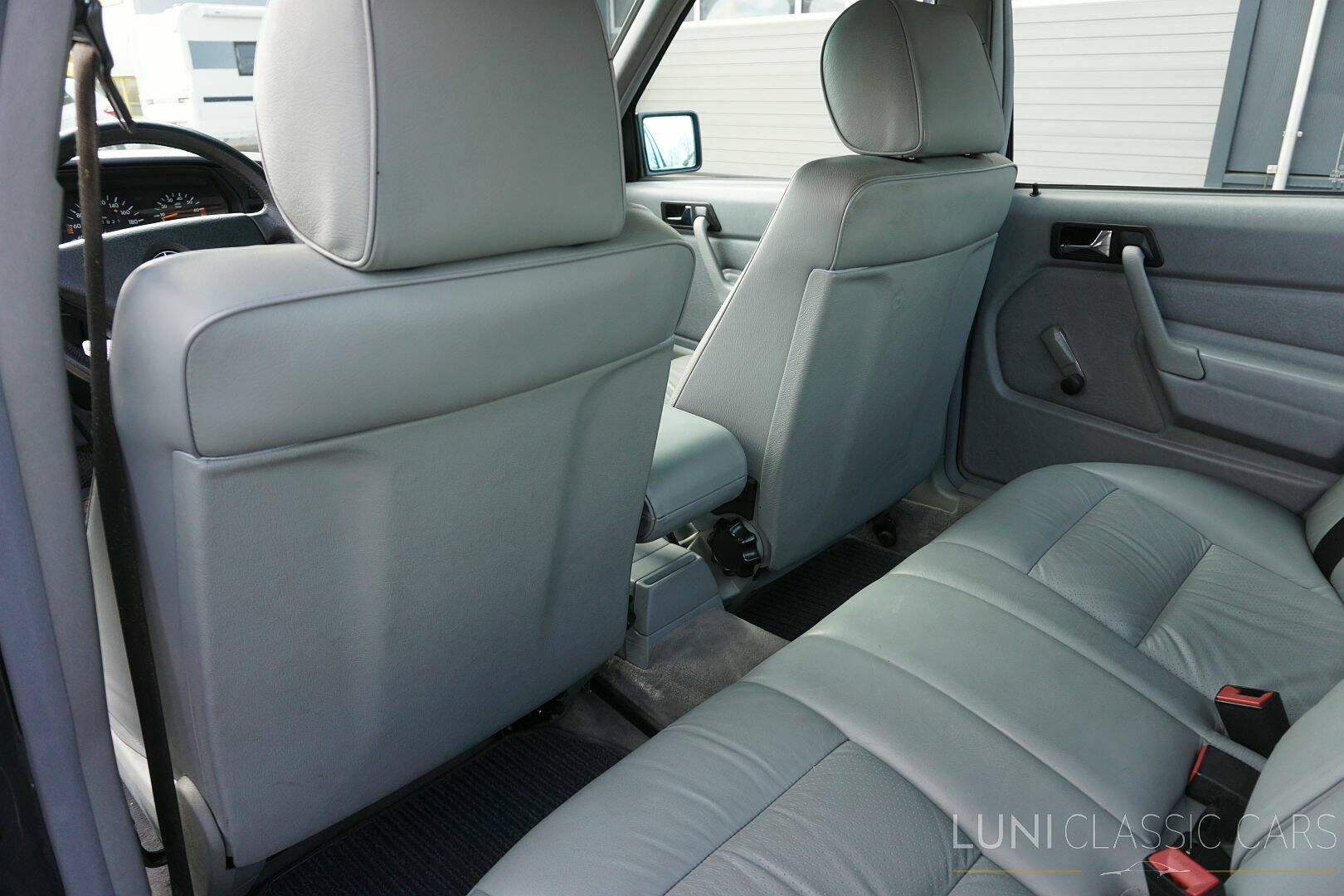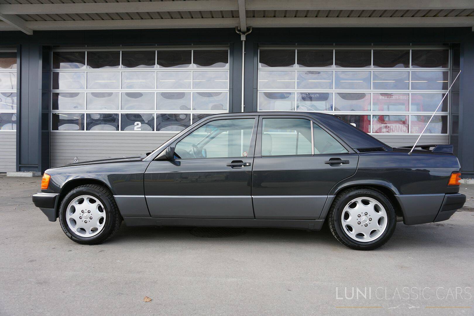 Passend zum äusseren (Blauschwarz Metallic) zeigt sich das Interieur des 190E edel und klassisch sachlich: klare Instrumente, hervorragende Ergonomie und jene berühmte Mercedes-Verarbeitungsqualität, die Jahrzehnte überdauert. Das originale graue Leder kann ein Lied davon singen, denn es befindet sich in einem makellosen Zustand.