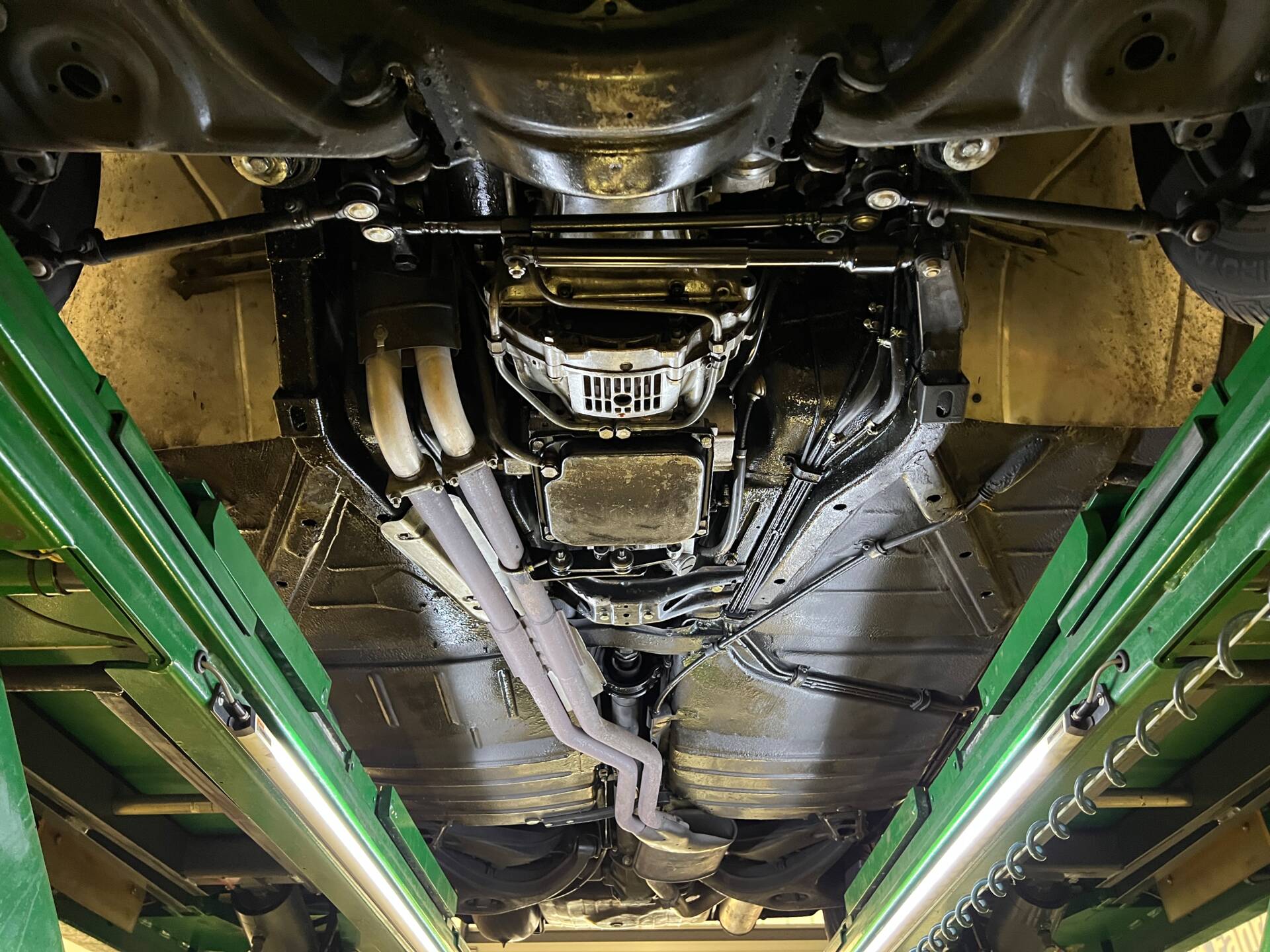 Inklusive der Beseitigung der seitlichen Begrenzungsleuchten und anschließender Lackierung beider Fahrzeugseiten unterhalb der seitlichen Zierleisten. Außerdem mit neuer Hohlraumkonservierung und Unterbodenkonservierung mit Wachs.**