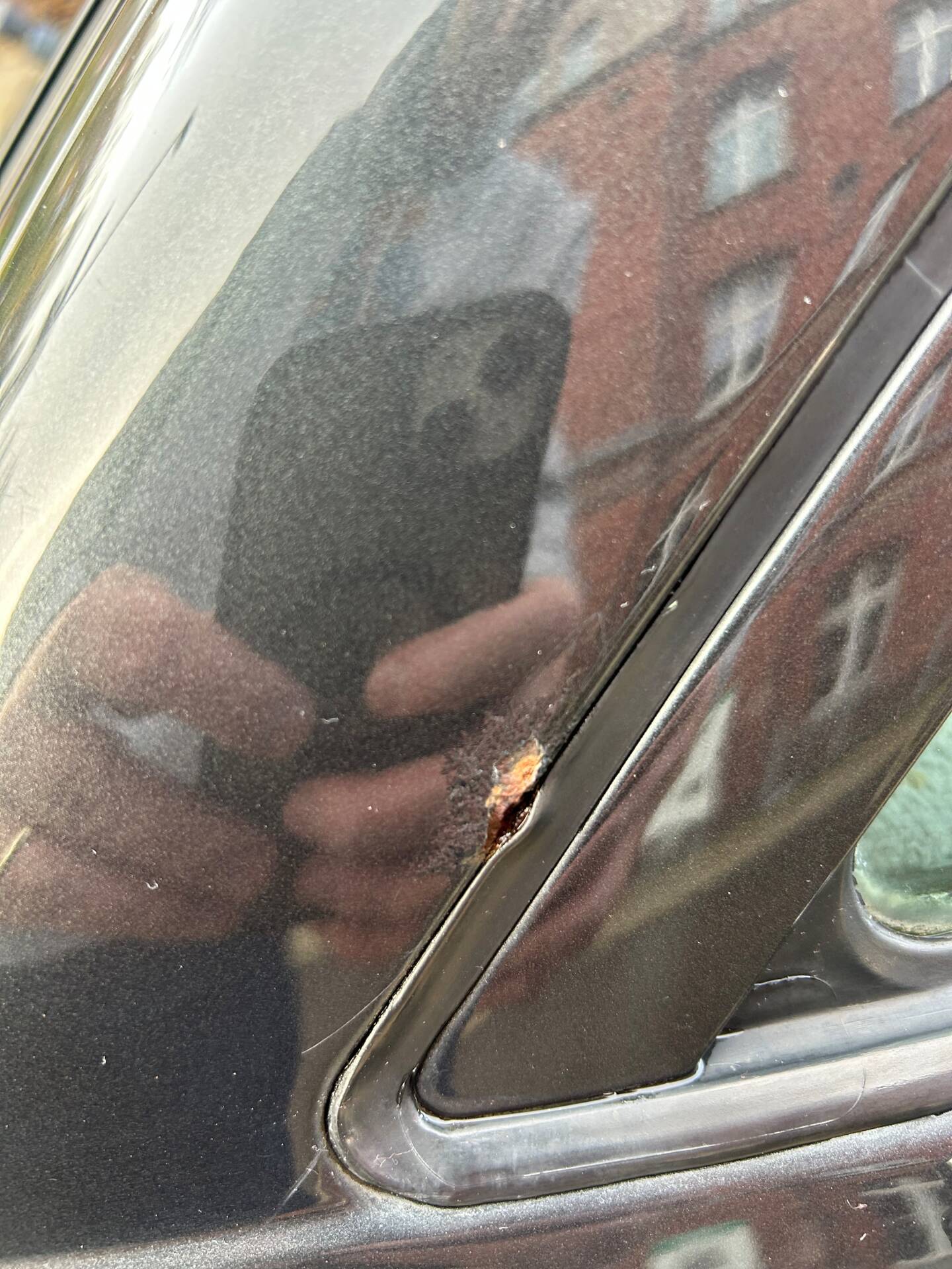 - Early signs of corrosion at the right rear window