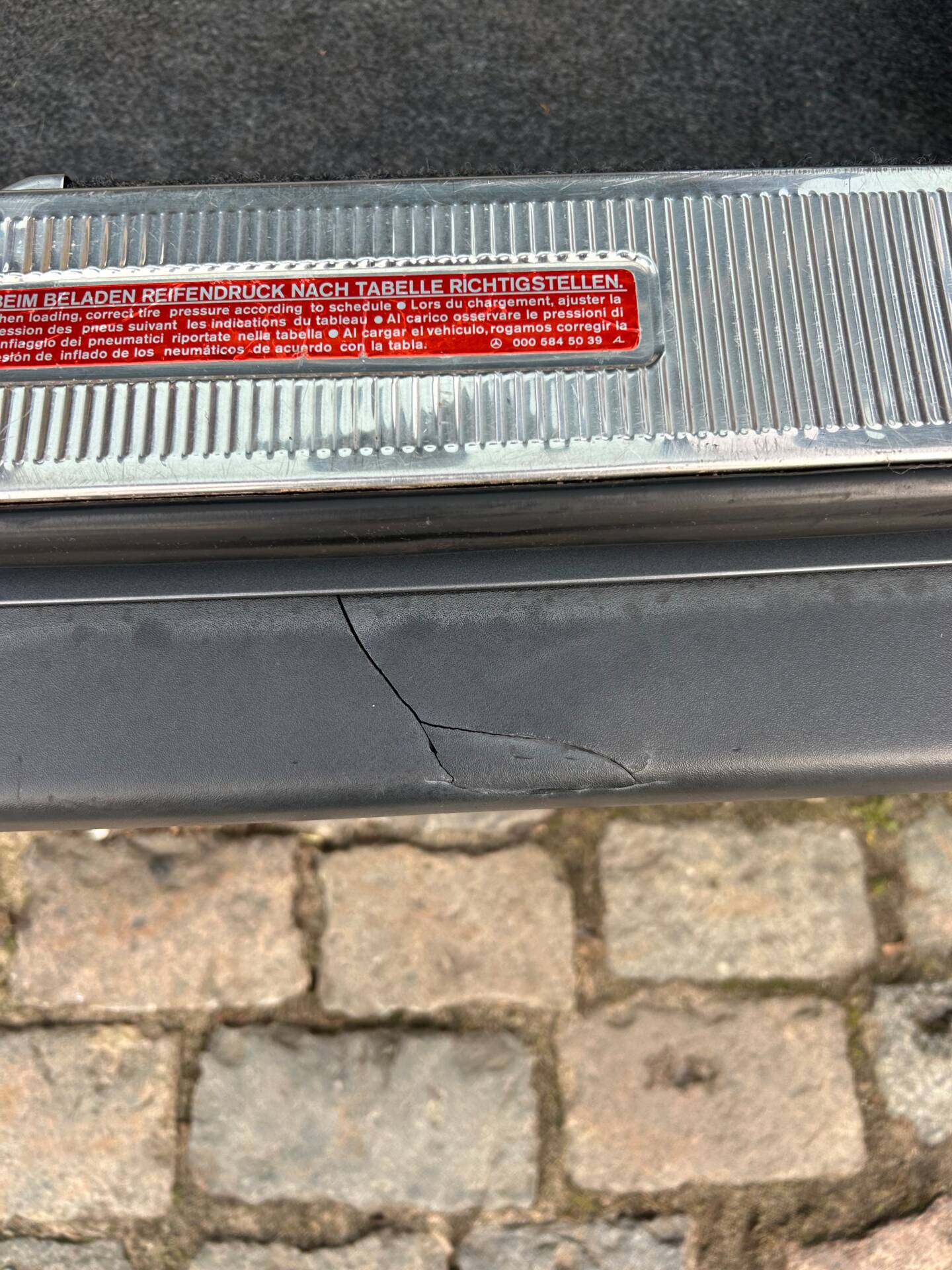 - Crack in the rear bumper (centre section)