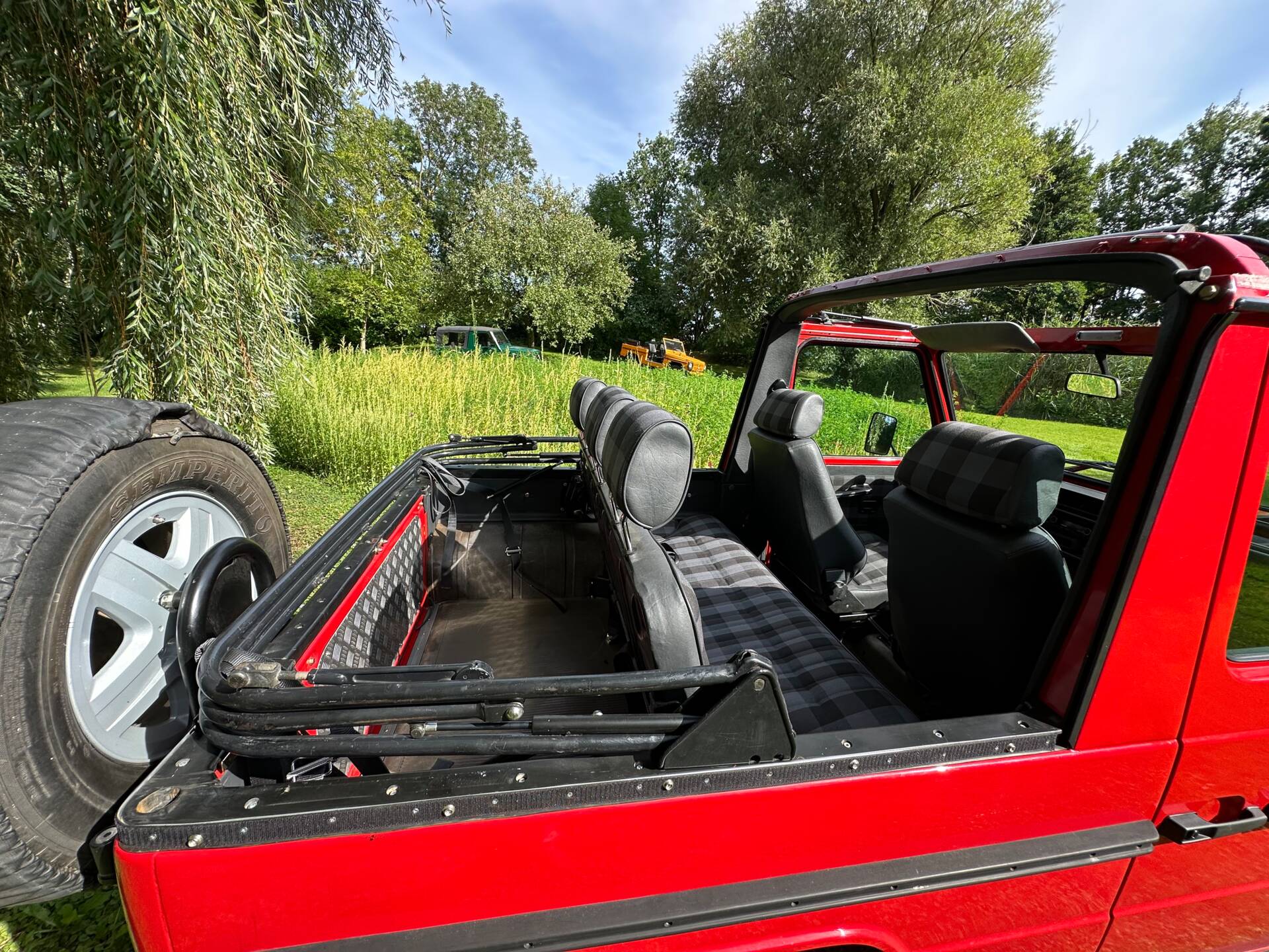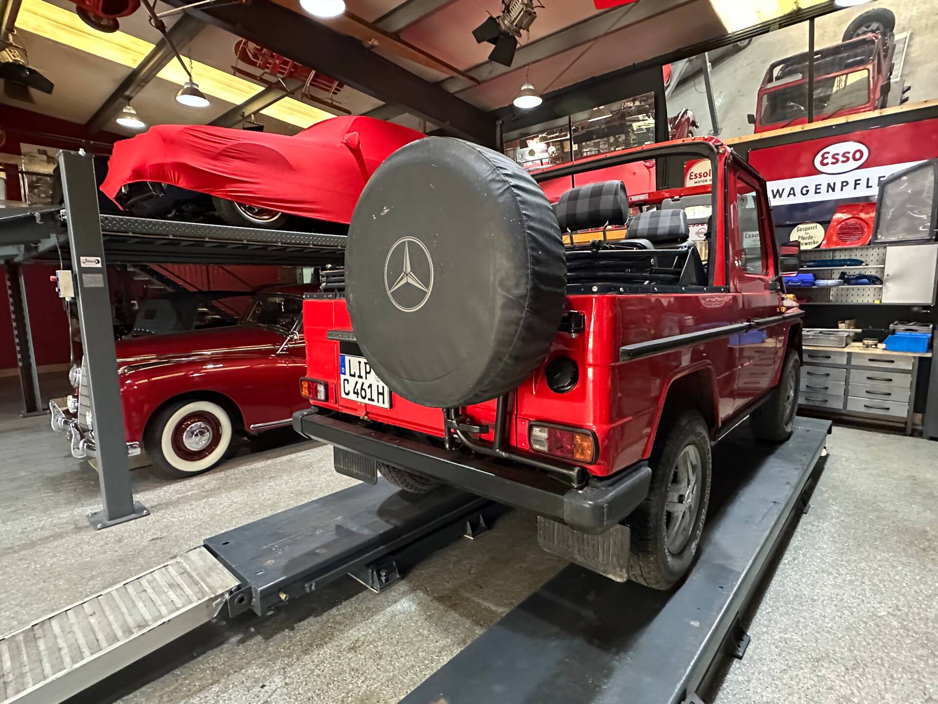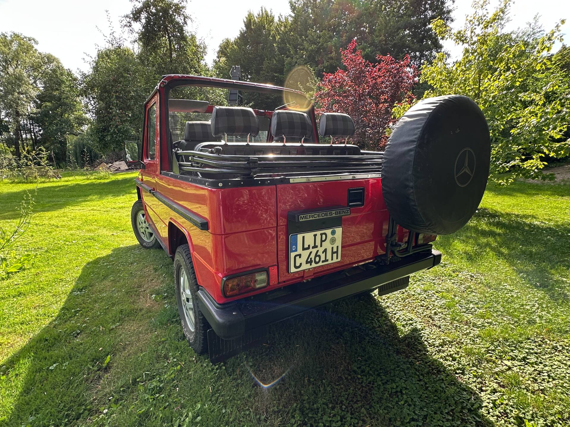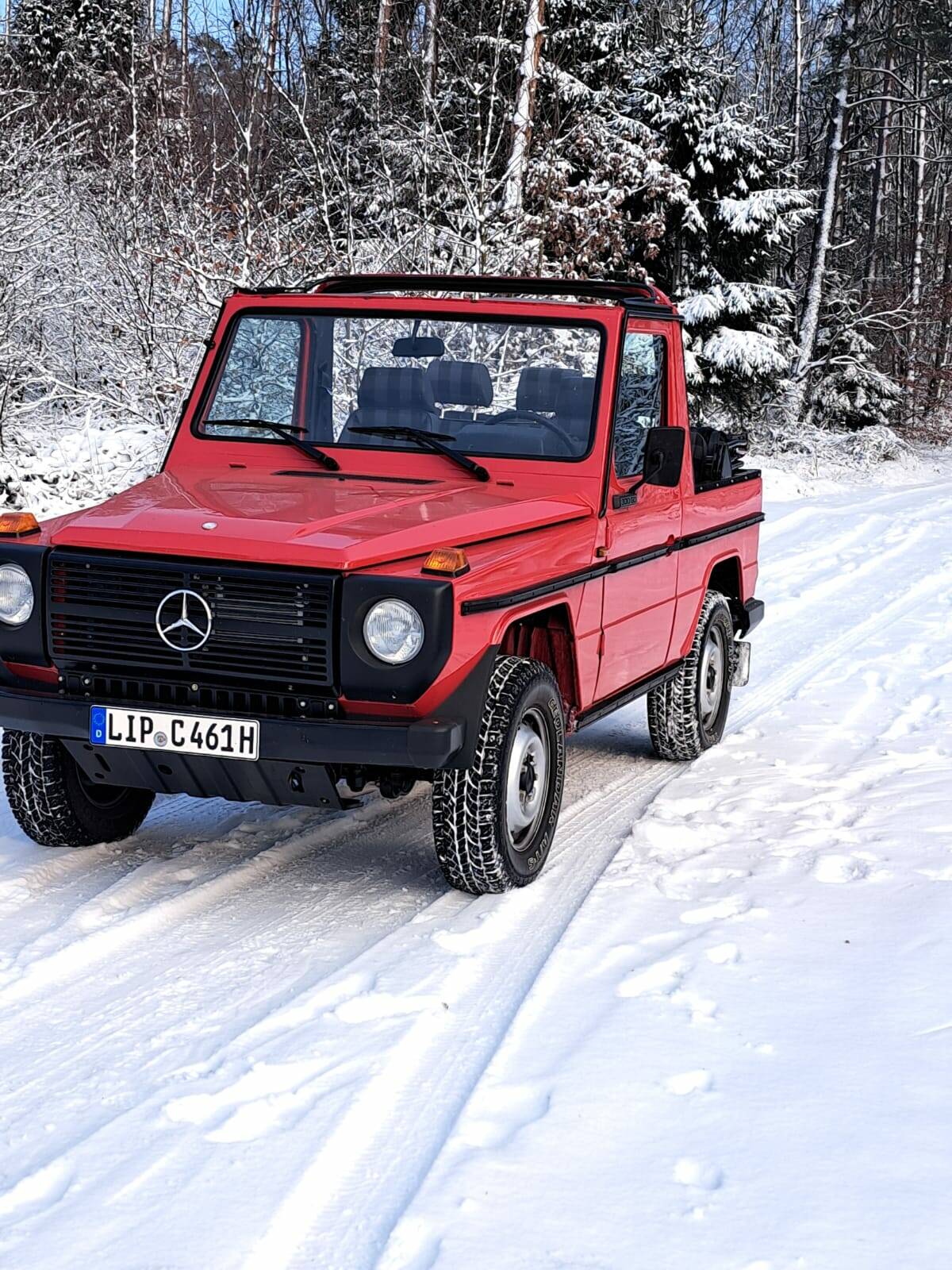 Mit diesem zivilen G Cabrio kann man noch ohne Schnickschnack die ursprüngliche Form des „G-Fahrens“ erleben. Die puristische Ausstattung der ersten Serie, seine Wendigkeit und das kraftvolle Nageln des Diesel sind ein rar gewordener Fahrgenuss. Für extremes Gelände ist er in dem Zustand zu schade. Besser man fährt mit ihm zur Jagd zum Baggersee oder ist Teilnehmer eine Oldtimer Rallye und fährt wieder sauber zurück in die Garage.
