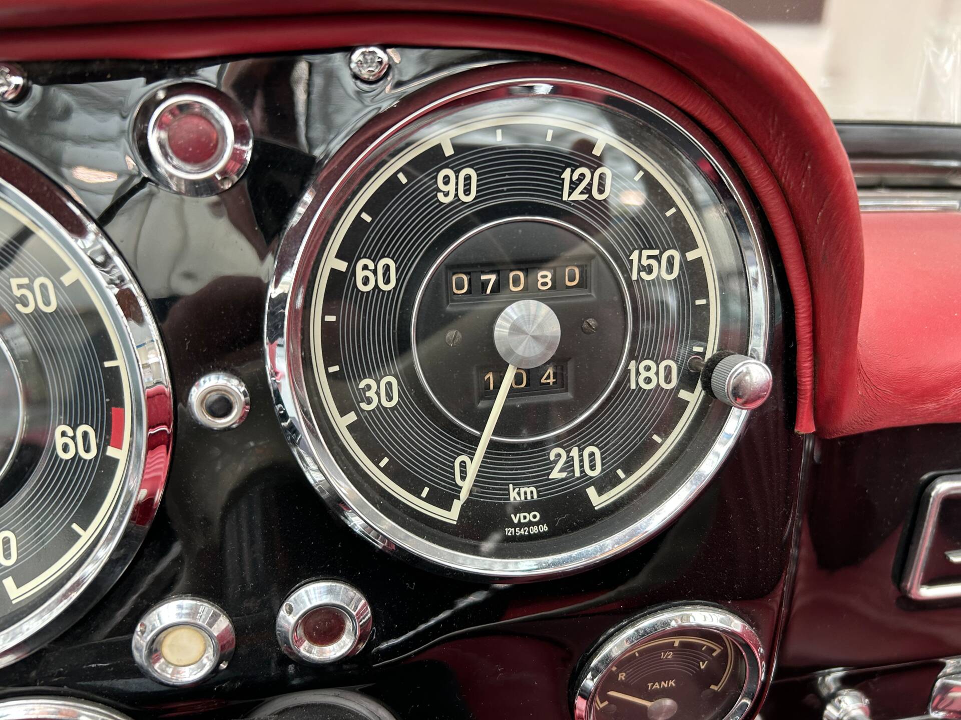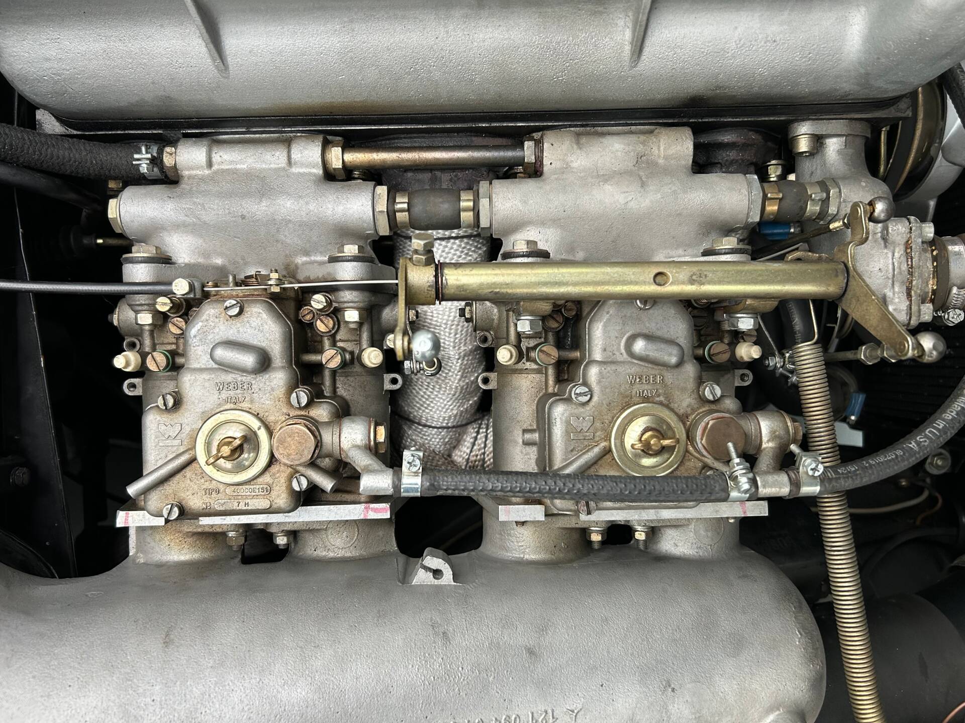 Wie so viele Exemplare dieses Modells wurde auch der präsentierte Wagen in den USA ausgeliefert. Und wie so viele bekam auch er die alternativen Weber-Vergaser spendiert. Der Nachteil der mangelnden Originalität wird durch die Vorteile aufgewogen und diese machen den Wagen flott und klanglich souverän. Dieses frühe Exemplar besitzt die transparenten Sonnenblenden sowie die seitliche Heckkennzeichen-Beleuchtung. Außerdem fehlen passend zum Jahrgang die Stoßstangen-Hörner.