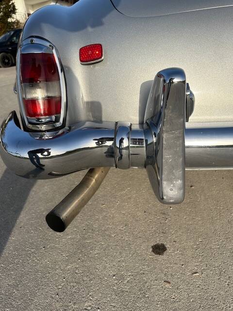Zum Verkauf steht ein Mercedes-Benz SL 190 W121 B aus dem zweitletzten Produktionsjahr. Das Fahrzeug stammt ursprünglich aus den USA und wurde von Gevers Classic Car (NL) erworben, technisch überholt und einer Vollabnahme gemäß § 21 StVZO unterzogen. Dabei wurden im Außen- und Innenbereich einige optische Anpassungen vorgenommen (u. a. neues Lenkrad, Chromteile etc.). Das Fahrzeug wurde noch in den USA im Originalfarbton Mercedes Rennsilbermetallic lackiert.