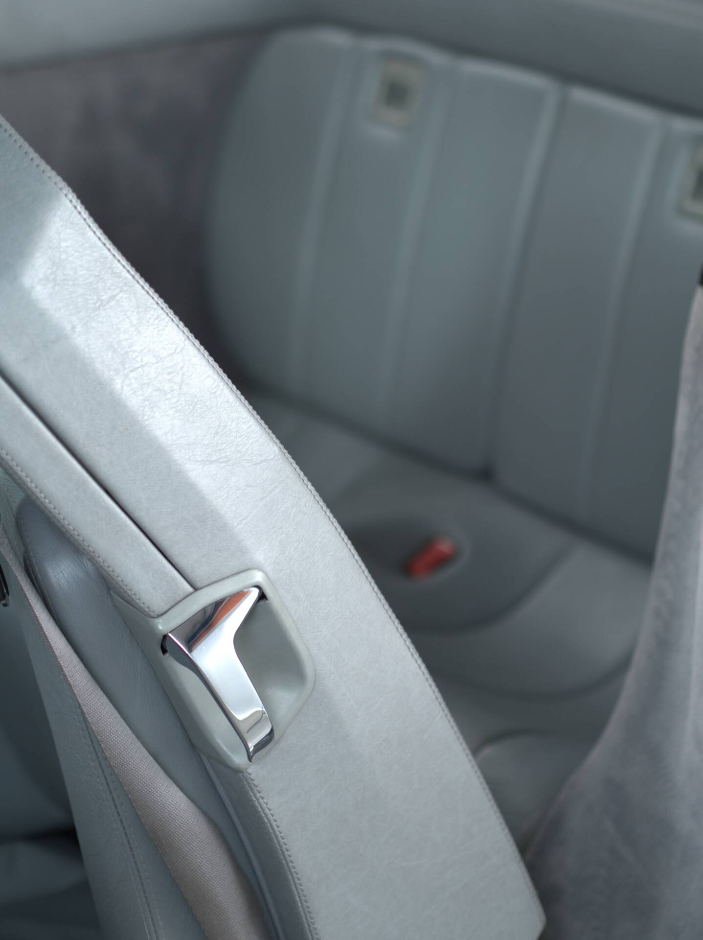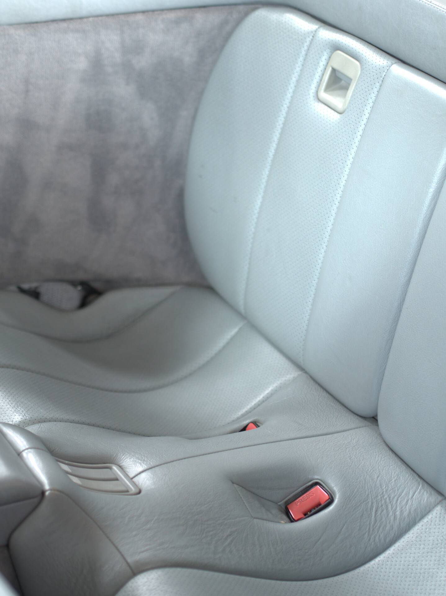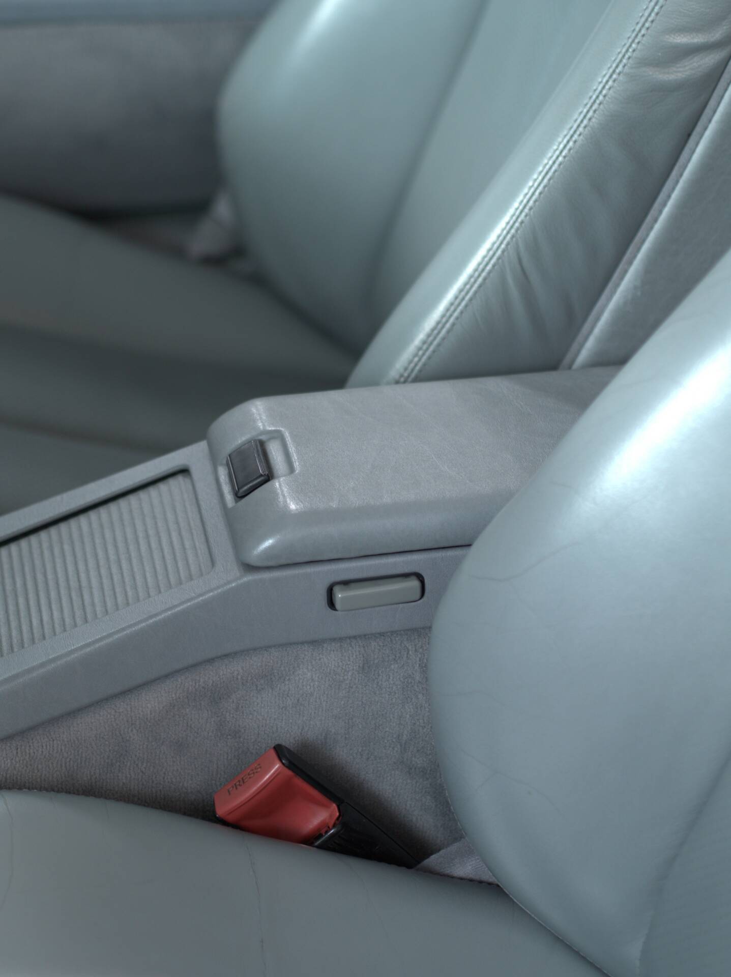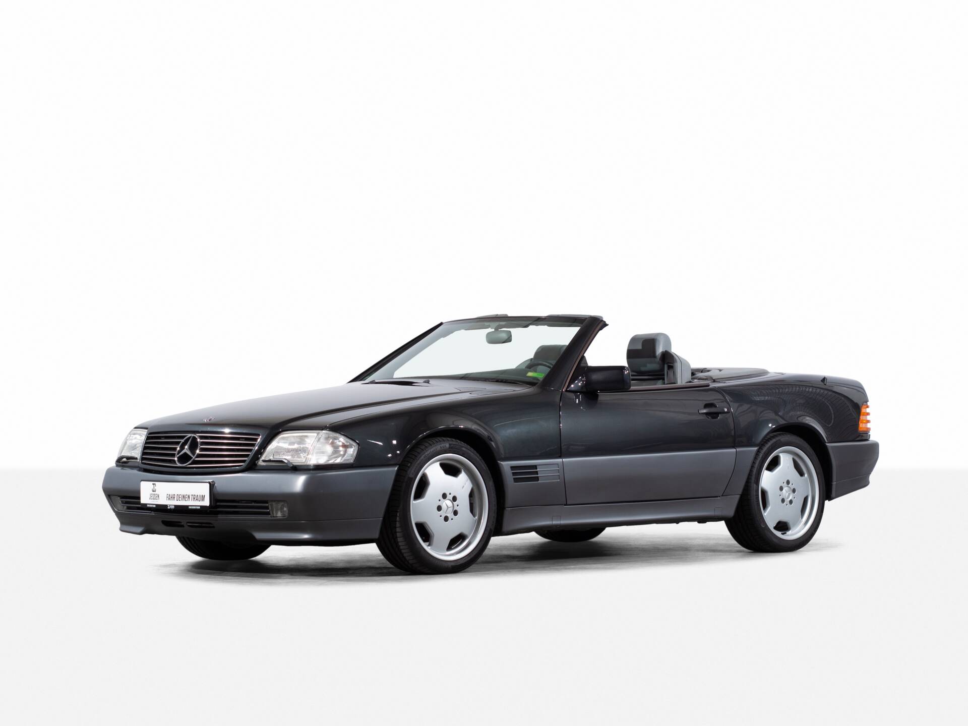 Our 500SL from 1993 is therefore an original model and has a mileage of only 99,100 kilometres. The classic colour combination of 199 blue-black metallic with side panelling in contrasting 700 old grey, black soft top fabric and grey leather does not suggest that we have a truly special vehicle in front of us.