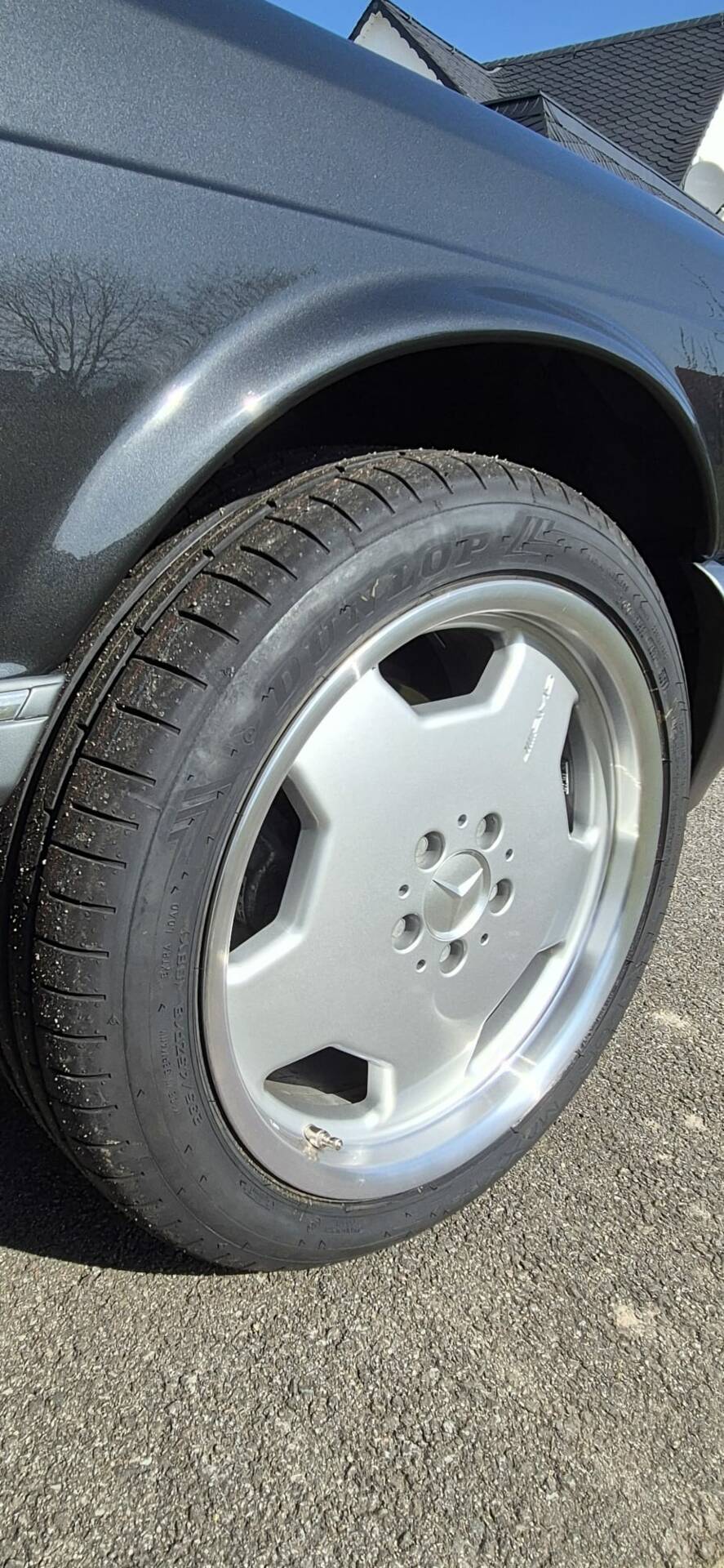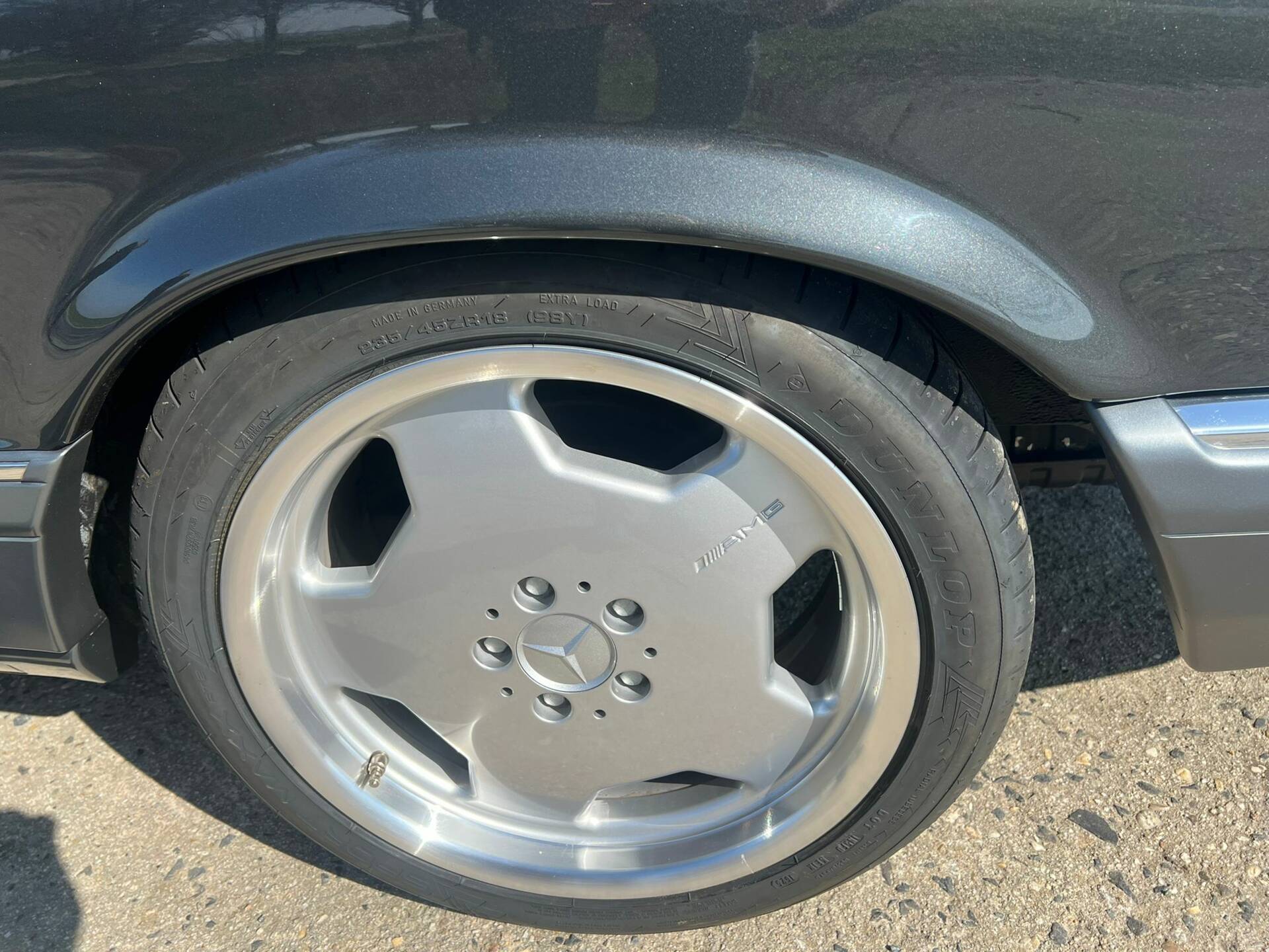 Die 18 Zoll-AMG-Alufelgen sind mit neuer Bereifung ausgerüstet und vom TÜV abgenommen und eingetragen.