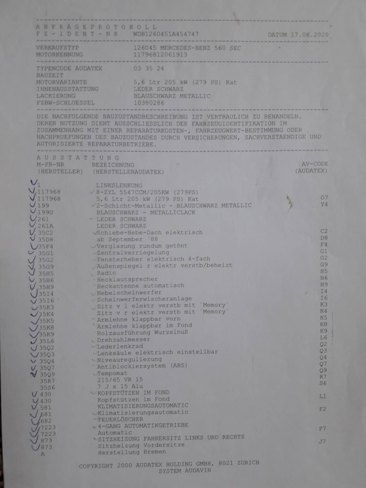 Somit hat der 560 SEC insgesamt 3 Halter seit der Erstzulassung von 1989.
