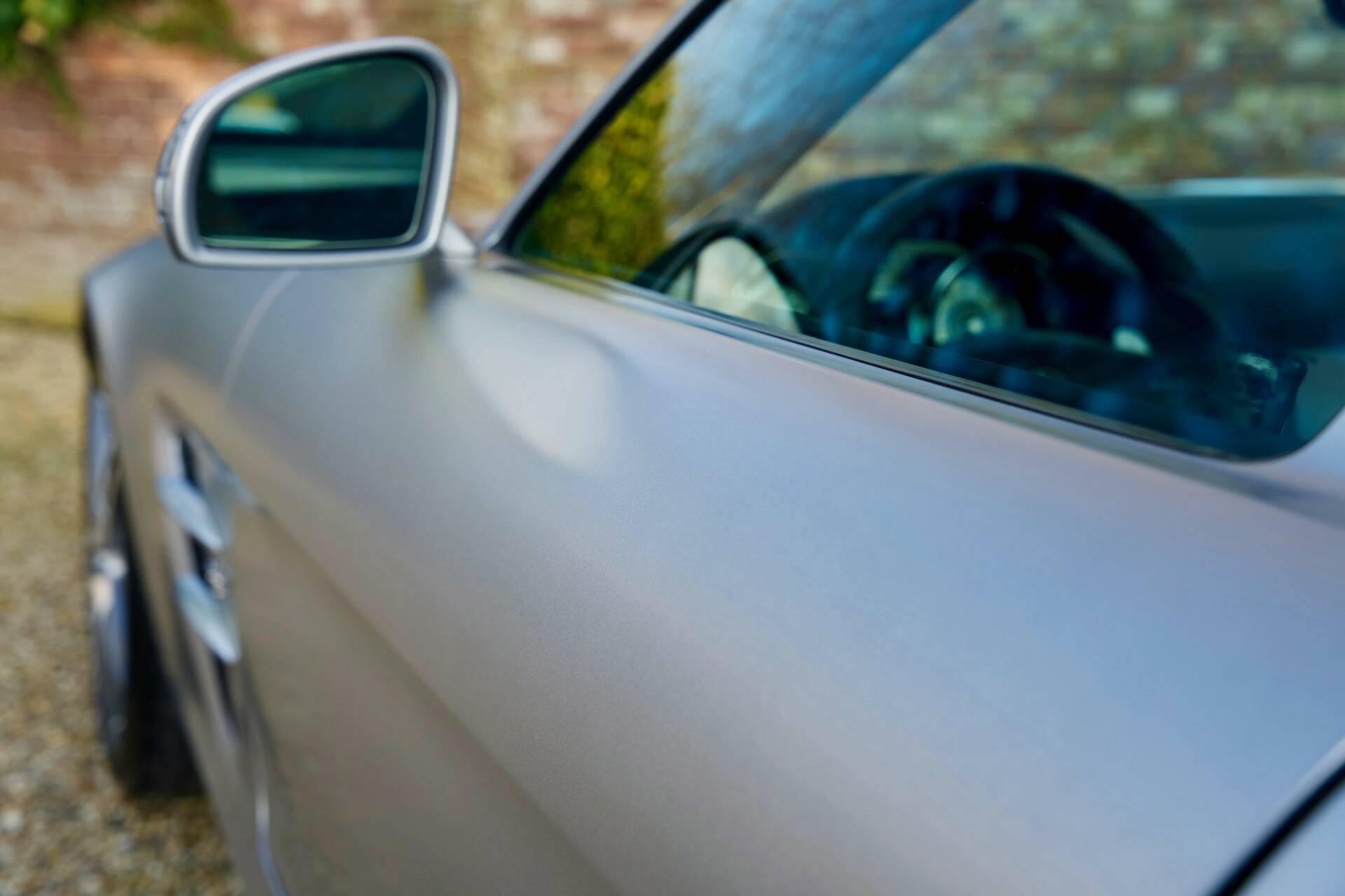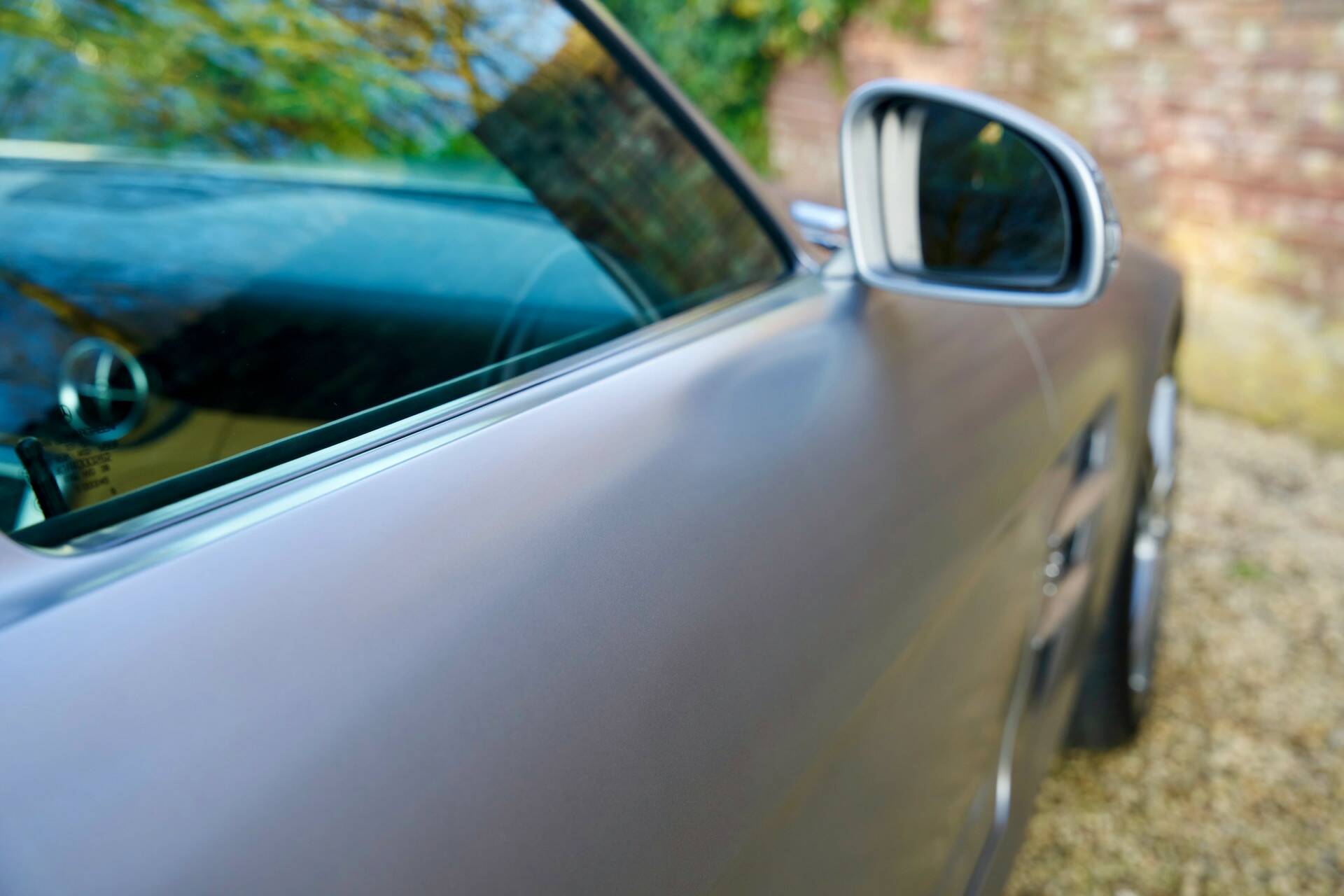 This SLS is finished in the exclusive Designo Magno Allanite Grey paint. This matte grey shade gives the car a subtle yet commanding presence. The "Sand Designo Exclusive" leather upholstery feels wonderfully soft to the touch and exudes pure luxury.