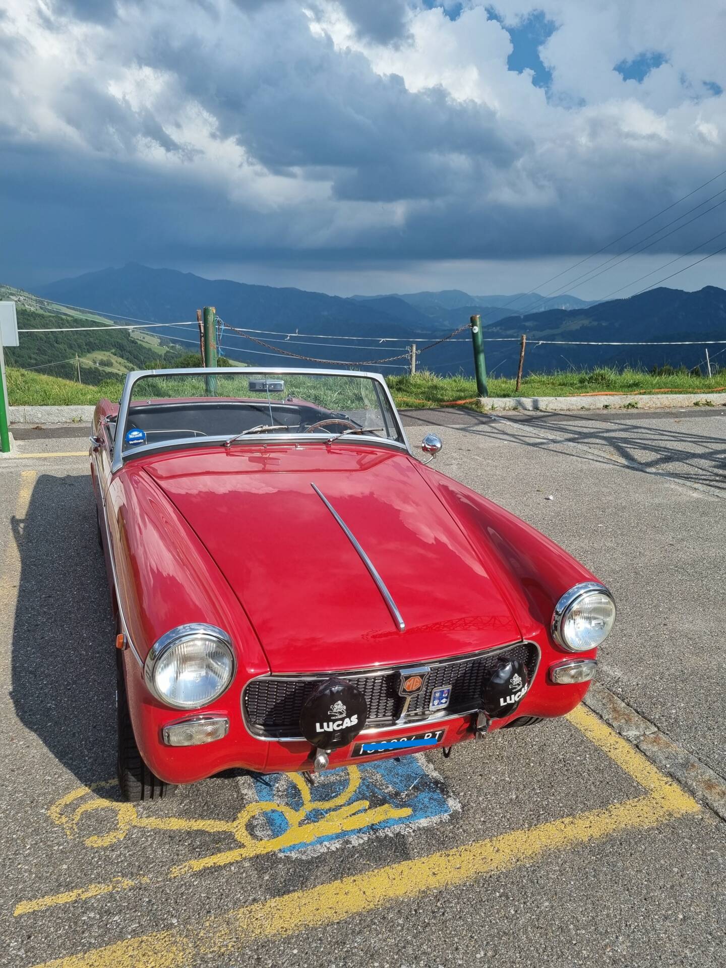 MG Midget seconda serie motore 1100. Ciclistica tutta rivista, riverniciata (colore originale, interno conservato capote originale tenuta perfetta. Rivista nella meccanica con carburatore weber e collettore specifico (collettore e carburatori di serie presenti), scarico inox, freni nuovi, cerchi in lega come da foto, accensione elettronica. Tutti i pezzi mancanti e/o sostituiti disponibili (carburatori originali, collettore originale, paraurti ecc.). Tutte le modifiche sono reversibili. Perfetta da provare e per gare di regolarità storiche. Includo 2 sedili sportivi nuovi da montare, cerchi in acciaio originali gommati. 4 gomme invernali. Visibile a Bergamo (Italia)