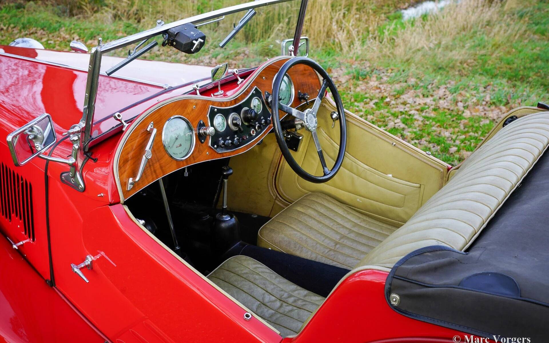 MG TA, built in 1936. Chassis number TA0805, engine number 1116. Finished in a beautiful red with a beige leather interior, this MG TA embodies the fun and enjoyment it brought to its owners in the 30s, and to the select enthusiasts who have cherished it ever since. This beautiful MG TA is in very good condition and offers that special pre-war driving experience. The MG T-series is best known for popularizing the affordable British sports car worldwide, particularly in the United States after the Second World War, and for embodying the classic open two-seater roadster style that defined MG's reputation.