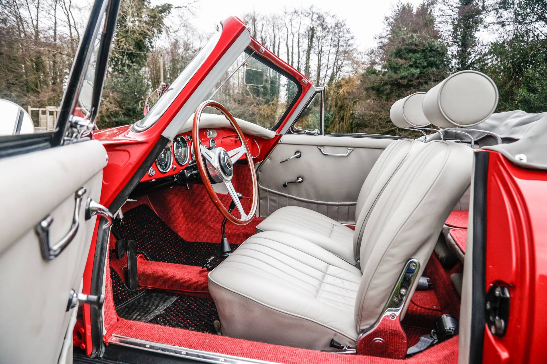 Finished in striking Ruby Red with a beautiful contrasting grey leather interior, TSU 906 is equipped with an impressive range of desirable features and upgrades. These include headrests, a radio, inertia-reel seat belts, a full tonneau cover, hood bag, 12-volt electrical conversion, chrome wheels, wood-rim steering wheel, headlamp grilles, auxiliary spotlights, toolkit, jack and owner's manual. Super 90 cabriolets of this quality and condition are seldom available. Consigned by Daniel Godin
