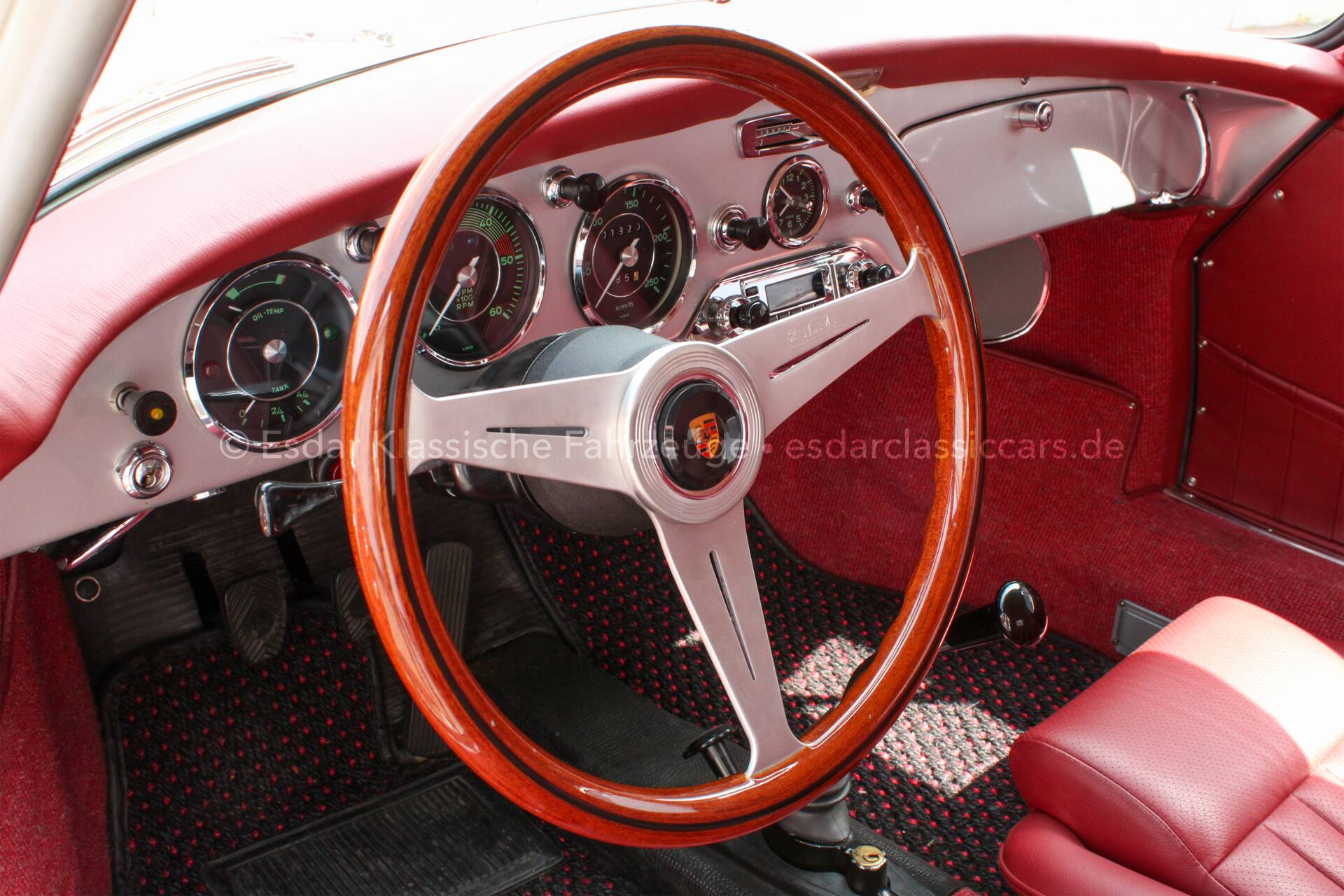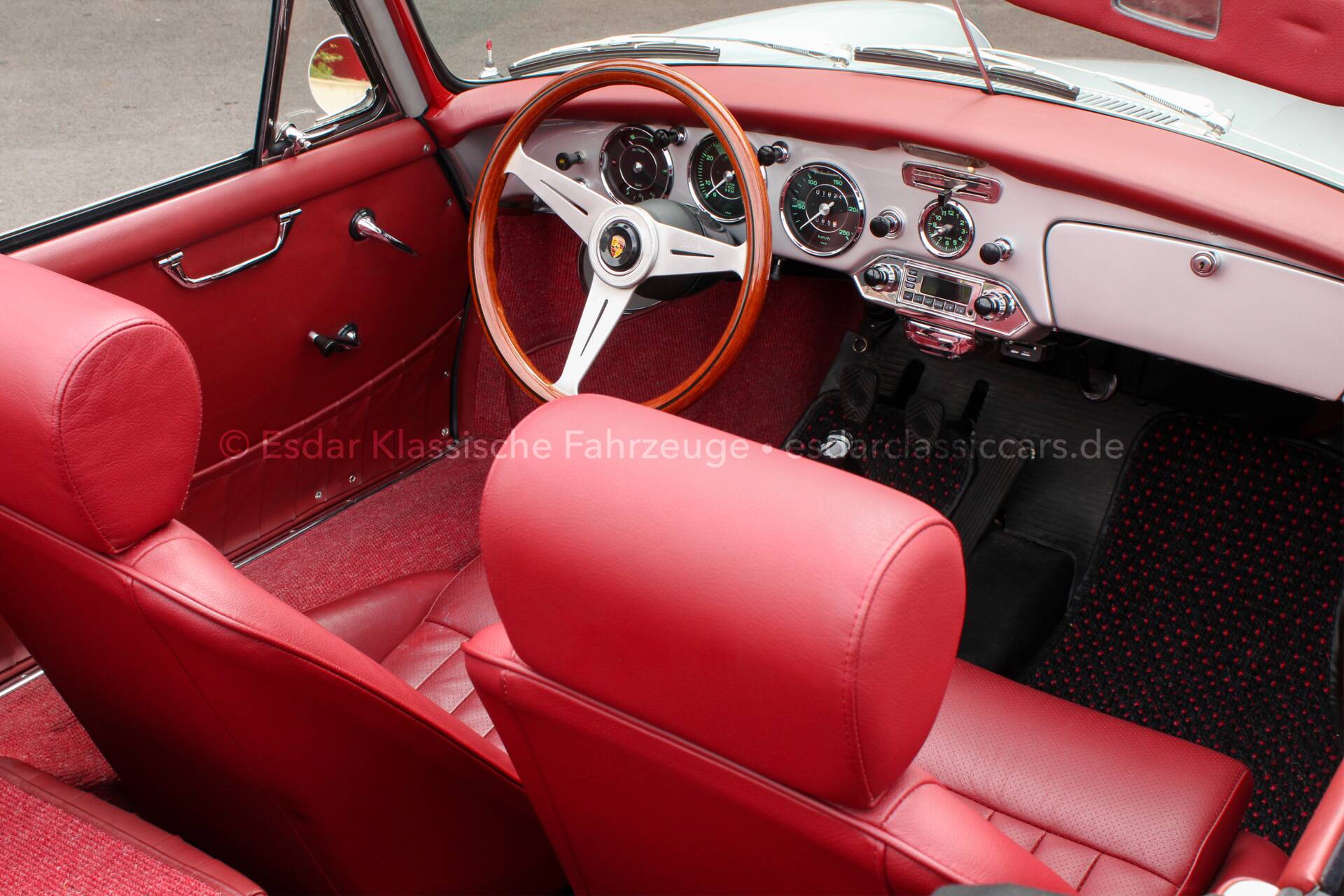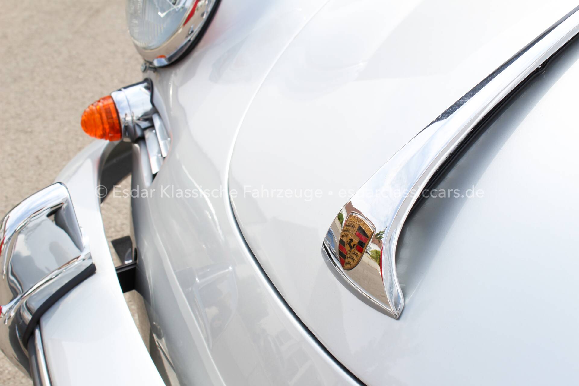Der Wagen wurde ursprünglich in den USA ausgeliefert und später fachgerecht auf europäische Spezifikation umgerüstet, einschließlich der Beleuchtung, Tachoanzeige und Rückleuchten. Ein offizielles Certificate of Authenticity von Porsche Cars North America liegt vor und dokumentiert die werkseitige Ausstattung sowie das Produktionsdatum des Fahrzeugs. Der Umbau auf 356C-Komponenten wie beispielsweise die Scheibenbremsanlage verbessert die Fahrsicherheit deutlich, ohne den Charakter des Klassikers zu verfälschen.