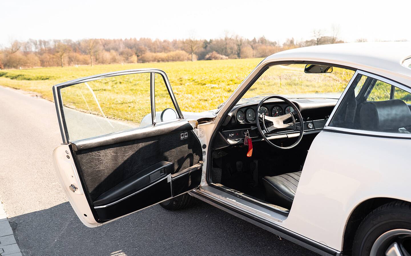 Dieser elegante Porsche 911 S Coupé präsentiert sich in der klassischen und zeitlosen Farbe Elfenbein und verkörpert die pure Form des frühen 911 – leicht, sportlich und unverwechselbar.