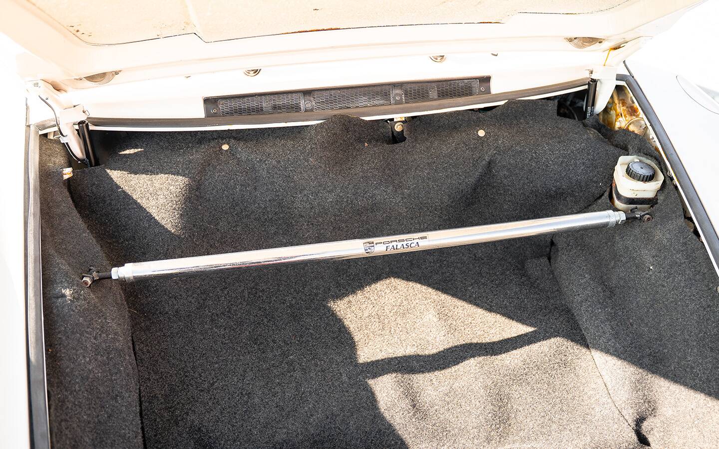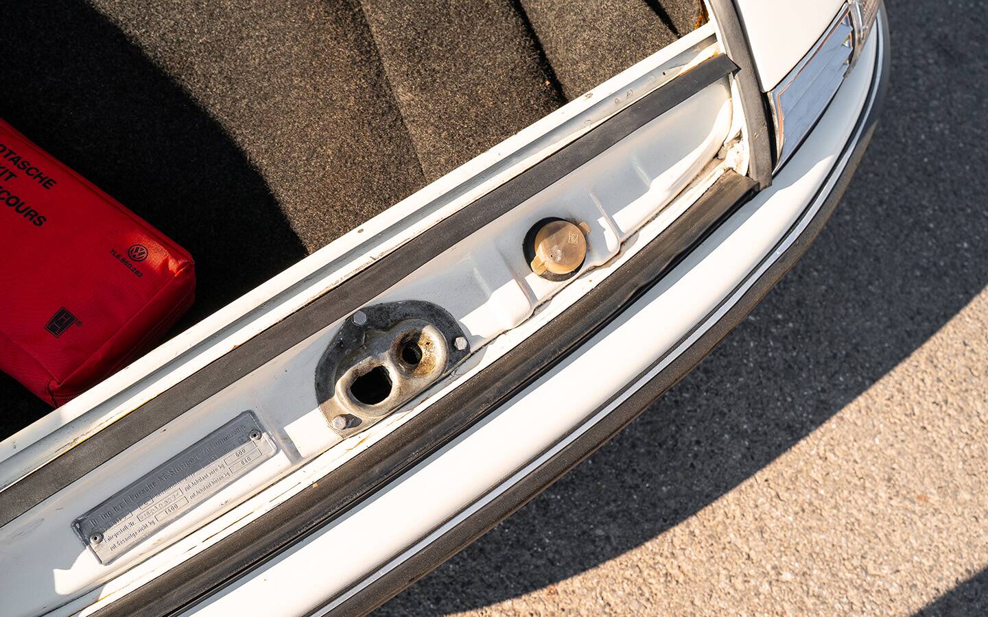 Das Fahrzeug wurde einmal vollständig neu lackiert. Laut einem vorhandenen Gutachten befindet sich jedoch im Kofferraum sowie im Motorraum noch der originale Erstlack – ein schönes Detail, das die Authentizität des Fahrzeugs unterstreicht.