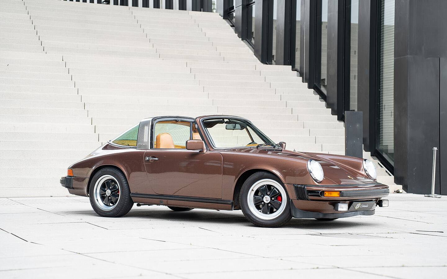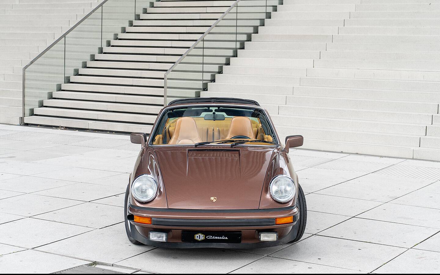Zum Verkauf steht ein klassischer Porsche 911 Targa G-Modell aus dem Jahr 1976, in der stilvollen Farbkombination Braun mit beigem Lederinterieur. Ein zeitlos eleganter Auftritt, der das Flair der 1970er-Jahre perfekt verkörpert.