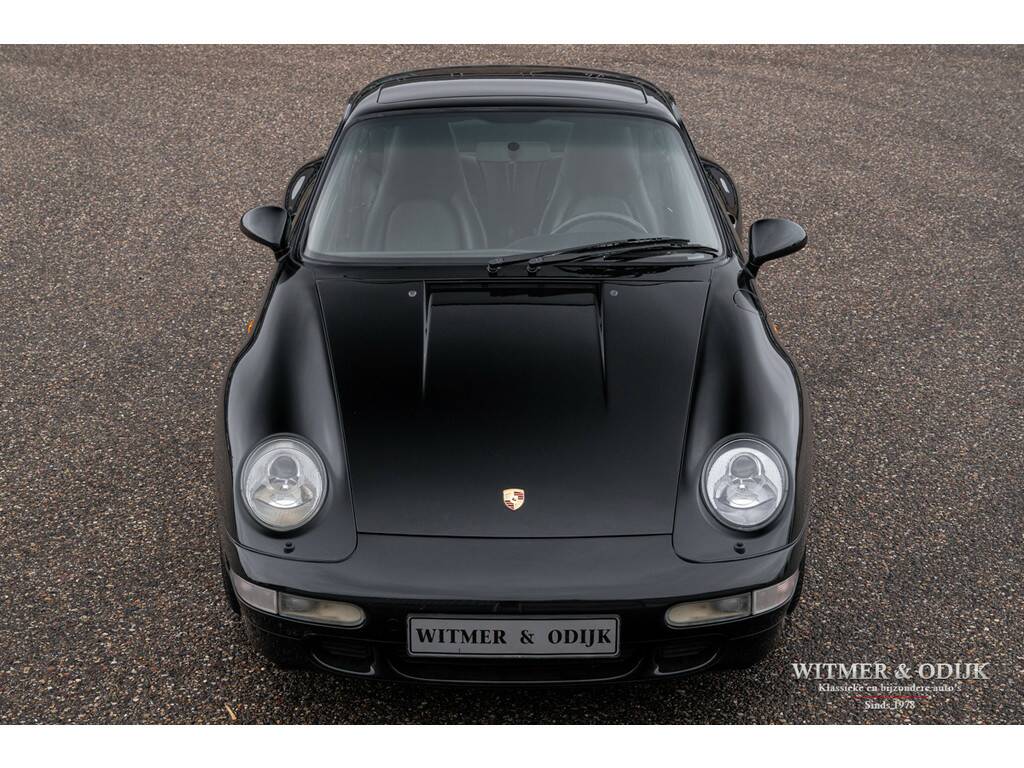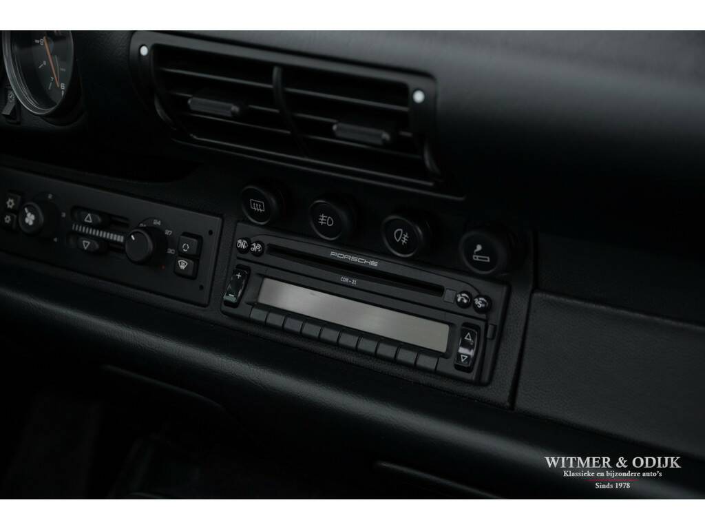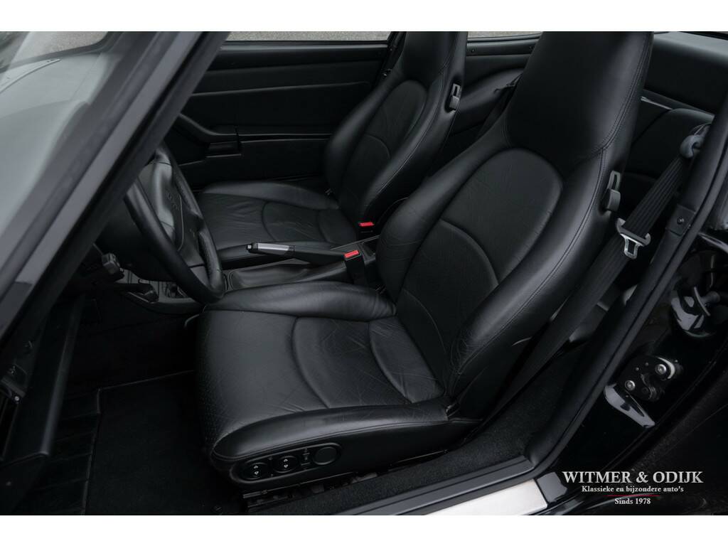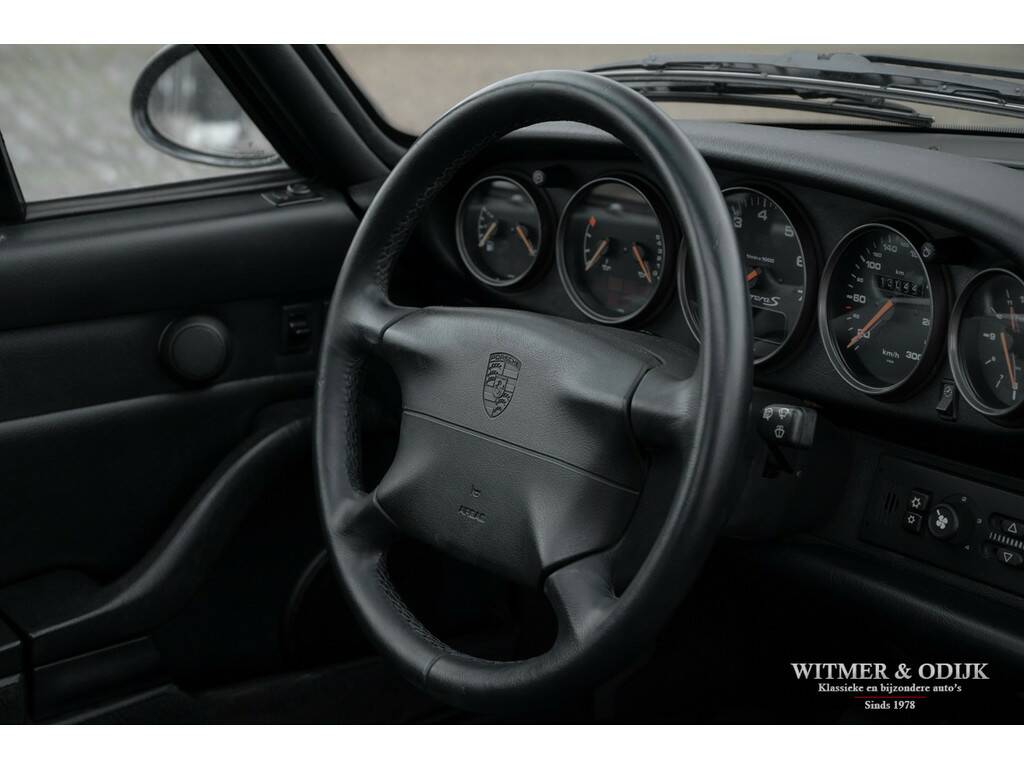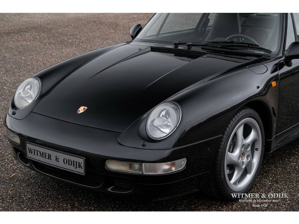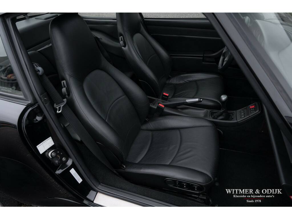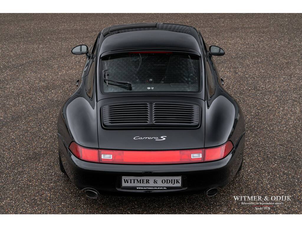 Een van de zeldzaamste Porsche's uit het laat-luchtgekoelde tijdperk is de Carrera S. In de ruim bemeten jas van de 993 Turbo is de Carrera S een lust voor het oog. Vooral de sexy achterzijde van dit fraaie model doet de liefhebber watertanden. Optisch onderscheidt de Carrera S zich het duidelijkst van de 'normale' 993 en ook de 4S door het in twee delen gesplitste rooster in de elektrisch uitklappende achterspoiler. De carrosserie en voor- en achterbumper zijn gelijk aan die van de Turbo. Zonder die vaste vleugel, waarmee u een echtscheiding of 'voortaan strikt alleen op pad' riskeert. De Carrera S werd slechts 3500 keer gebouwd en daarom ziet u ze niet vaak te koop staan. Meestal zijn het dan automatische Tiptronic versies, dit exemplaar is een van 1200 gebouwde 2S versies met de zeldzame handgeschakelde zes-bak. En zeldzaamheid is dé voorwaarde om het kopen van een Porsche ook een verantwoorde investering te laten zijn. De Porsche in kwestie moet dan ook wel een hele échte zijn, waarvan hier akte. Deze 993 Carrera S werd nieuw verkocht in Duitsland. Ze is volledig origineel en schadevrij. Altijd in handen geweest van liefhebbers die louter officiele dealers of bekende specialisten aan de auto lieten werken. Er is een lijvig en compleet dossier bij de auto aanwezig. Boekjes, rekeningen, sleutels, etc. alles compleet en origineel voorhanden. Compleet uitgevoerd met o.a. elektrisch schuifdak, automatische climat control, elektrisch verstelbare stoelen, derde ruitenwisser, centrale deurvergrendeling met afstandsbediening, boordcomputer, stoelverwarming, originele CD 21 Porsche radio/cd speler, etc.