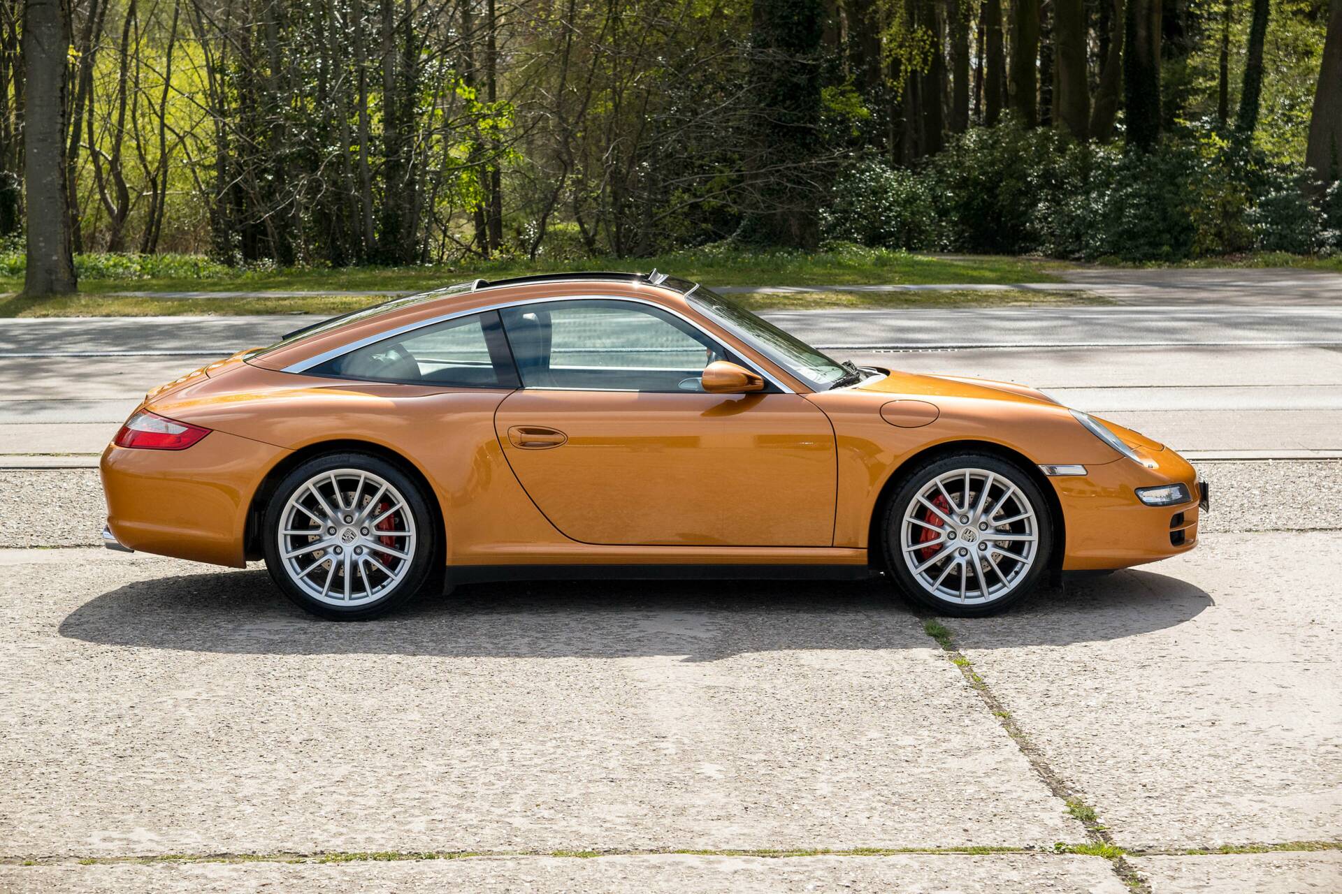 What immediately sets this car apart is its Paint to Sample finish in Nordic Gold Metallic (LM2Z). A colour ordered outside the standard range at the time and also featured in official Porsche Targa 4S brochures. In reality, this shade stands out even more, warm, elegant and perfectly suited to the lines of the 997. The car still retains approximately 95% of its original paint, which is a significant advantage today. Only the front trunk lid has been repainted due to stone chips. Otherwise, this is a very honest and well-preserved example.