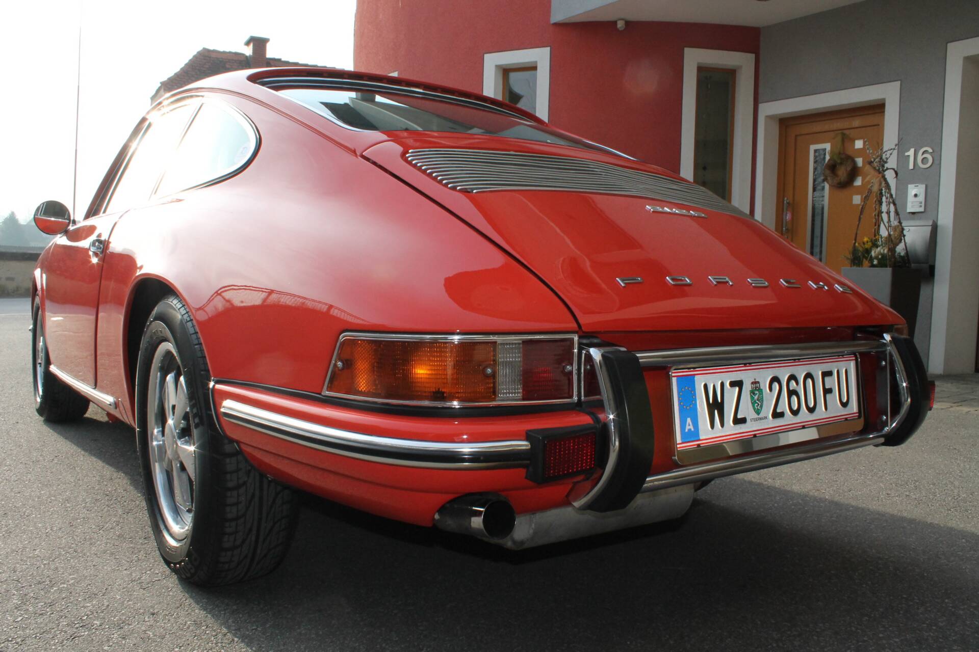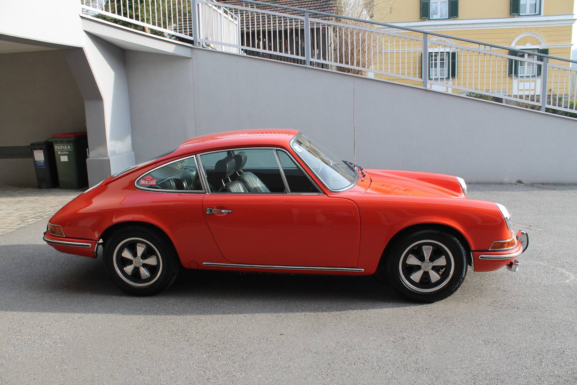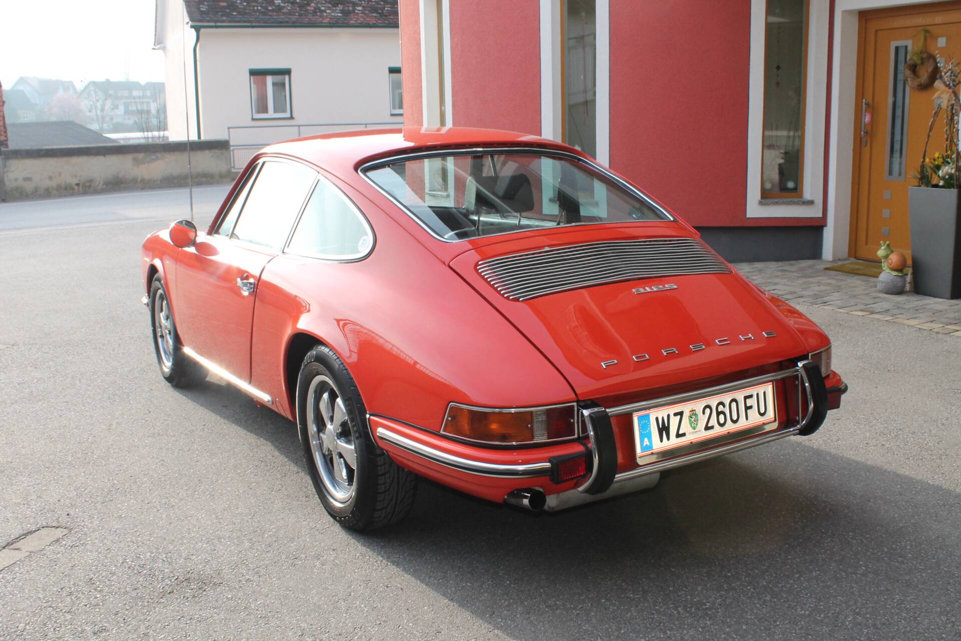 The combination of the rare original blood orange paint (POR 6809), the S equipment with 5-speed transmission, and the complete documentation (V5 title, US invoices, Porsche Scene Live article) give it a high collector's value.