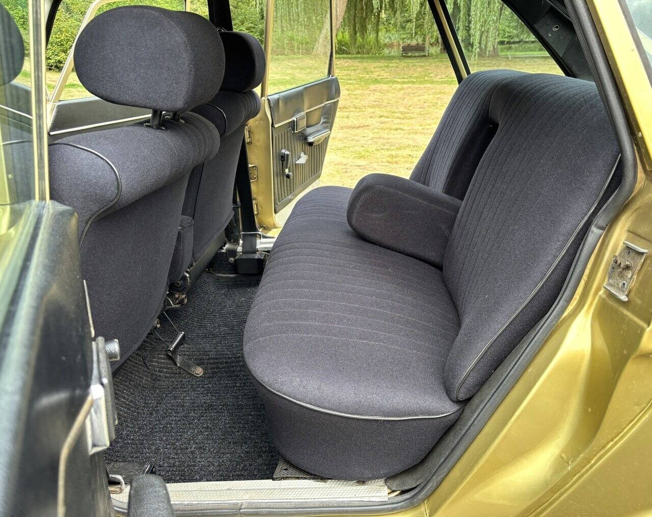 Het interieur is in een zeer mooie staat. De stoffen bekleding is in het verleden vernieuwd, en de stoelen zijn toen opnieuw gevuld. Het dashboard is origineel, de prachtige Jaeger instrumenten hebben gereviseerde oranje wijzers en alles werkt zoals het hoort. Zelfs de elektrische ramen en centrale vergrendeling werken perfekt. Ook het “sportieve” stuur is prachtig, het heeft echt een seventies uitstraling.