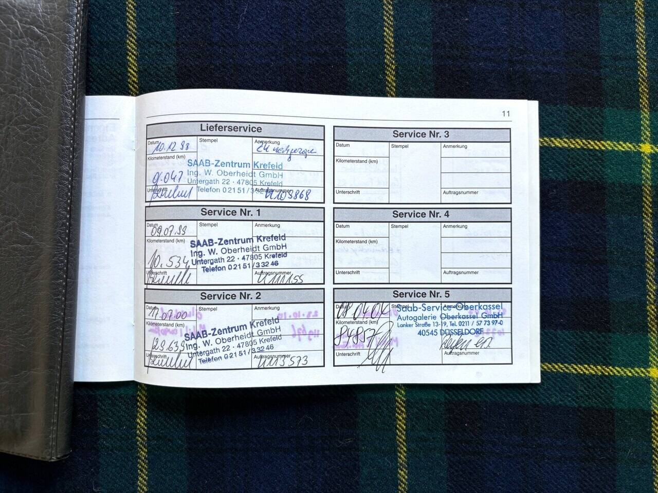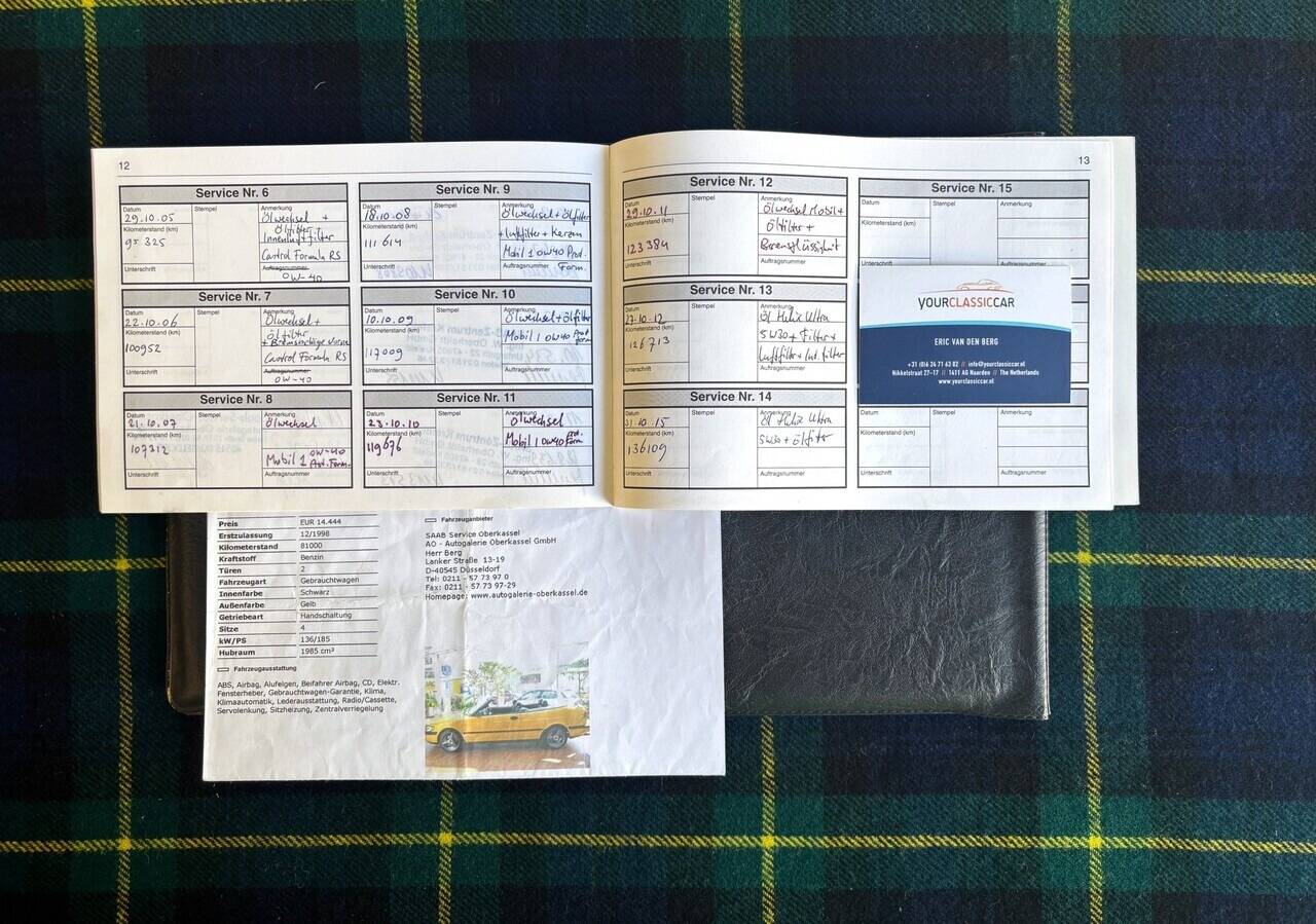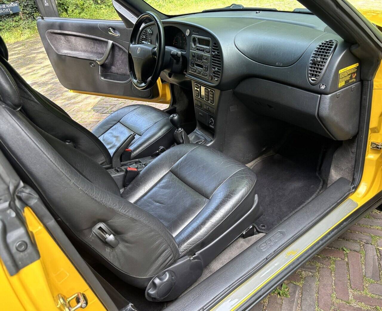 Het interieur is ook helemaal origineel en de donkergrijze leren bekleding ziet er mooi uit. Het dashboard is voorzien van een turbodrukmeter en de mellow yellow aanduiding. Alles werkt zoals het hoort en de uitrusting is heel compleet: climate control, cruise control, stoelverwarming, windschot, etc. Dankzij alle goede zorgen in het verleden is de auto uitstekend bewaard gebleven. Deze Saab is niet te vergelijken met het gemiddelde aanbod op het internet.