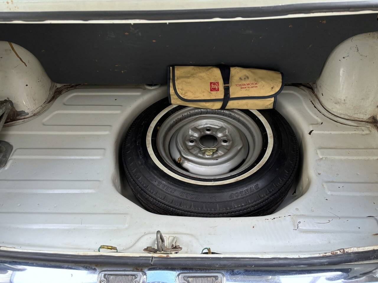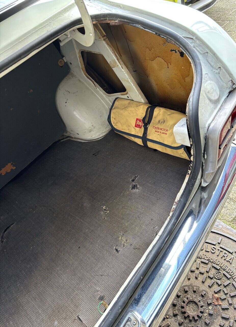 Deze zeer originele Corolla KE-20 is meer dan zomaar een schuurvondst. Dankzij de verwarmde stalling is de conditie opvallend goed. De body ziet er gaaf uit en is grotendeels nog in de originele lak. Uiteraard met wat patina, maar dat mag ook wel na 53 jaar. Alles is origineel: de bumpers, de velgen met chromen wieldoppen, alle sloten, stickers en de afsluitbare tankdop. Het stalen schuifdak werkt perfekt en is roestvrij. Ik ben een fan van een schuifdak, want het zorgt voor extra lucht en licht en je kan hem veel gebruiken, want je rijdt toch rustig met een oldtimer.