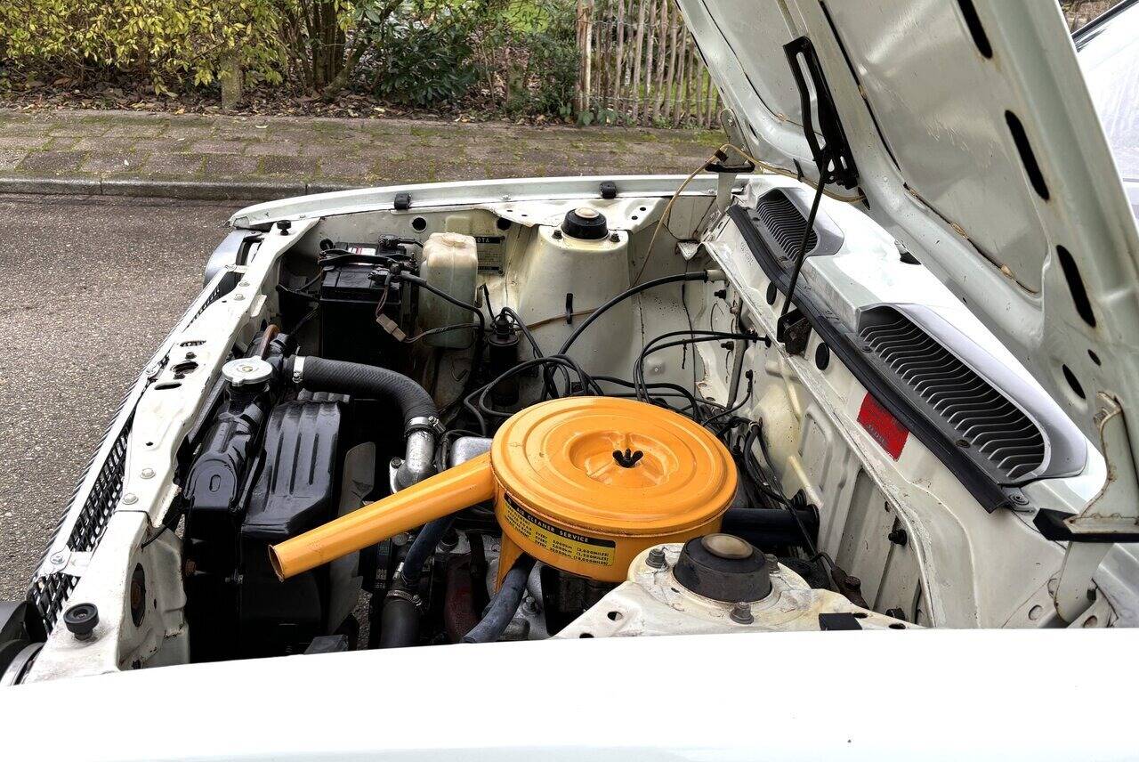 De binnenzijde is volledig origineel en typerend voor de Japanse 70'er jaren: eenvoudig en functioneel. Het dashboard is heel en alles werkt, het is echt een mooie tijdcapsule. De originele skai bekleding is links enigzins aangetast, maar de rest van de bekleding is goed bewaard gebleven. De stoelen hebben verstelbare rugleuningen, vaste hoofdsteunen en er zijn originele heupgordels aanwezig.