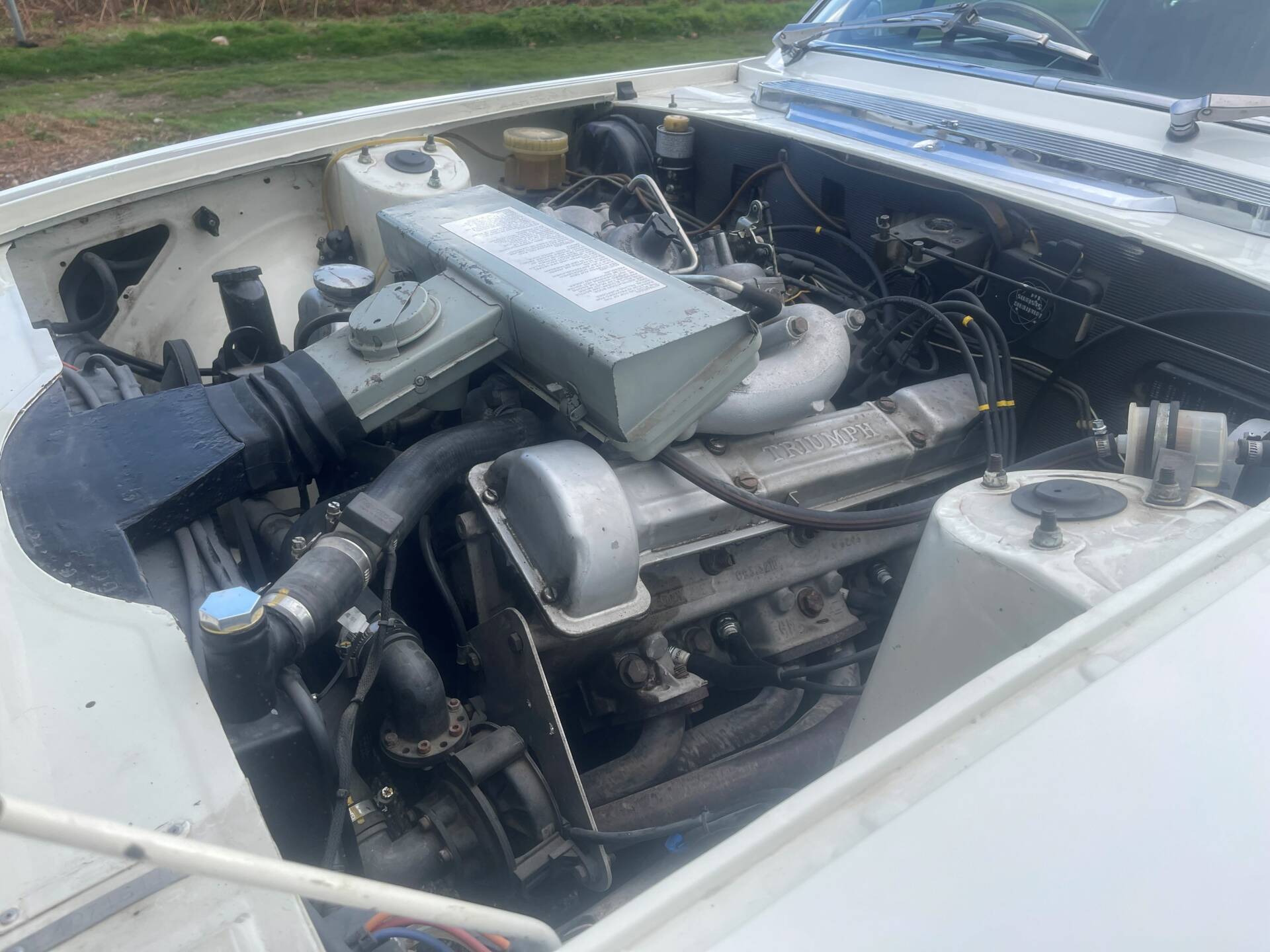 Powered by Triumph’s own 3 litre V8 – itself a development of the successful four-cylinder engine from the Triumph Dolomite – this car has the 4-speed manual gearbox with useful overdrive on 3rd and 4th gears. Triumph claimed 145 bhp for the Stag and a top speed of around 120mph. Having been well maintained in recent years, this example runs and drives well. An electronic ignition unit is fitted.