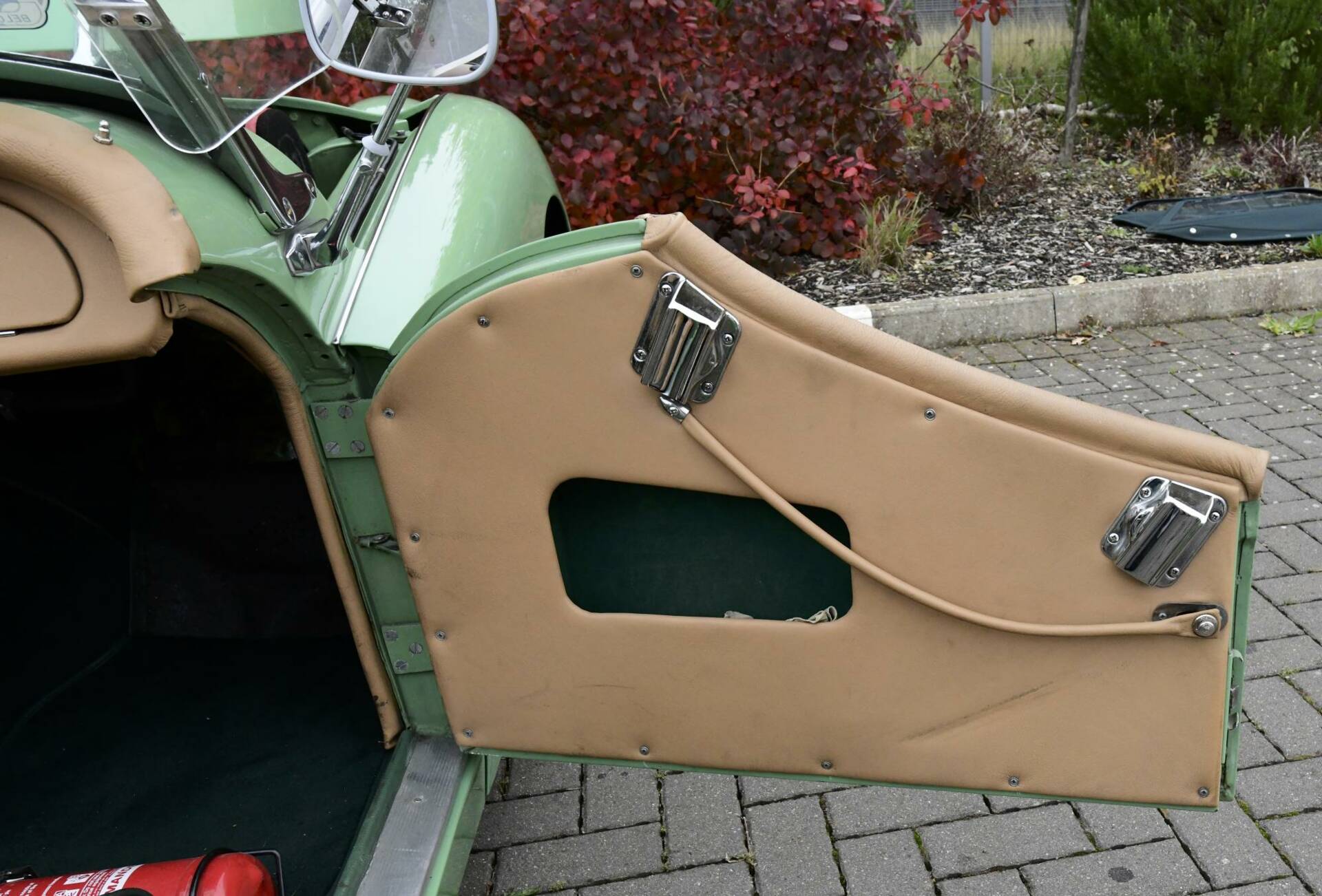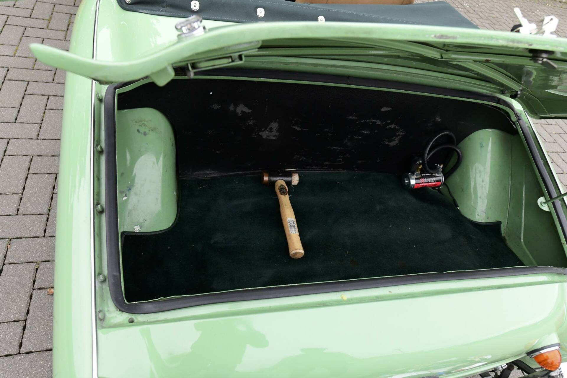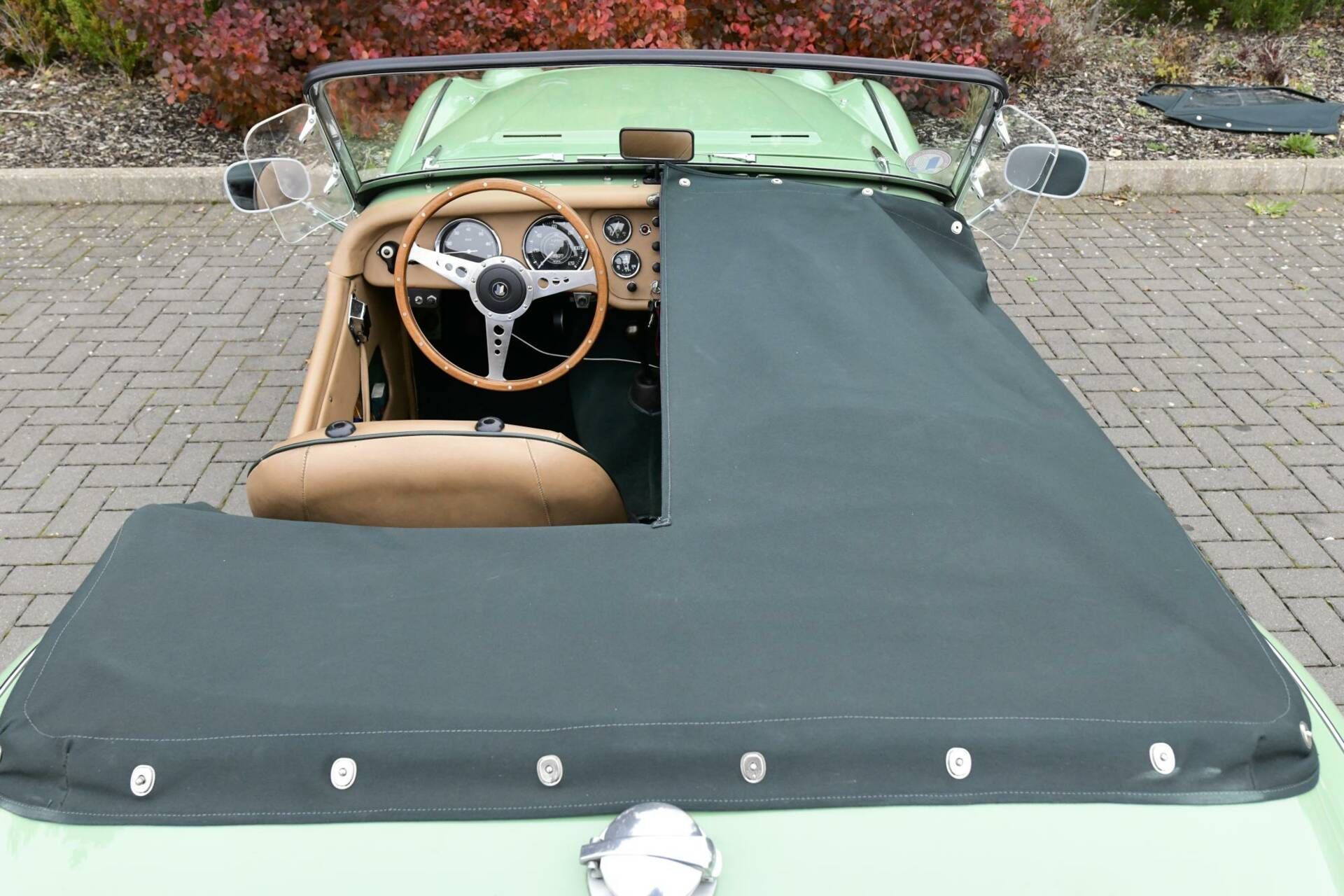 Full Hood, Tonneau & side screens in green mohair.